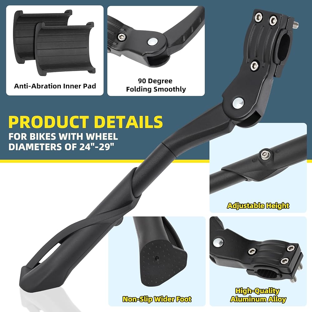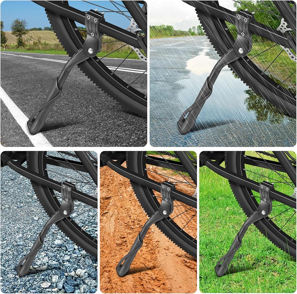 🚲(دعم قوي ومستقر): مصنوع من سبائك الألومنيوم عالية الجودة ومسامير معززة من الفولاذ المقاوم للصدأ، يوفر مسند دراجة Desoto متانة استثنائية ودعمًا قويًا، مما يضمن بقاء دراجتك في وضع مستقيم وآمن على الأسطح المختلفة.