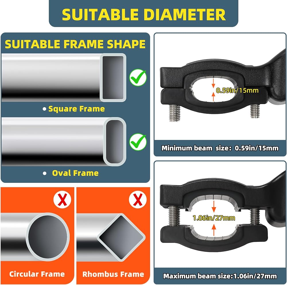 🚲【تصميم معزز مضاد للانزلاق】يتميز بوسادات سيليكون غير قابلة للانزلاق وقاعدة بلاستيكية سميكة لمنع الانزلاق بين المسند وإطار الدراجة، مما يوفر قبضة إضافية ويحمي دراجتك من الخدوش والتآكل.
