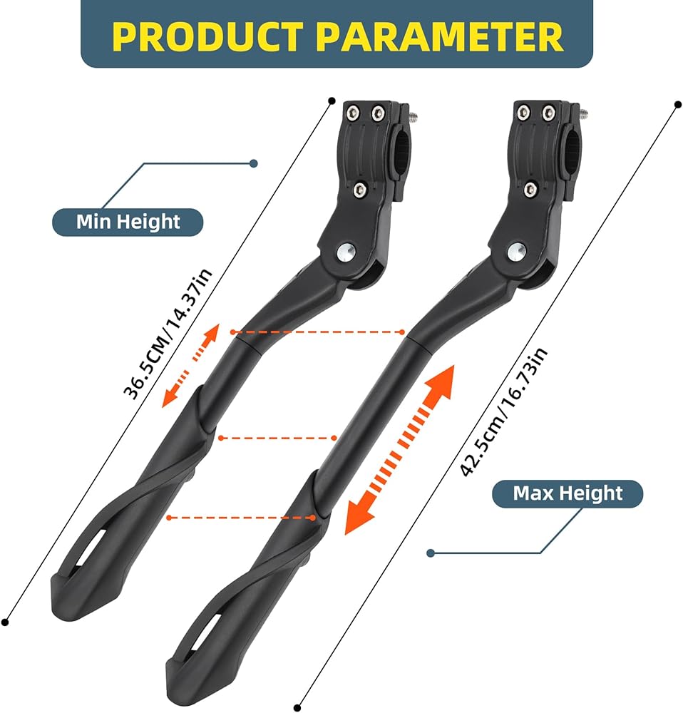 🚲【تعديل سريع للارتفاع】يمكنك بسهولة تخصيص طول مسند الدراجة العالمي هذا (34 مم - 40 سم) باستخدام مفك البراغي المتضمن، مما يجعله متوافقًا مع عجلات مقاس 24 - 29 بوصة لدراجات الجبال والطرق والطي ودراجات السباق.