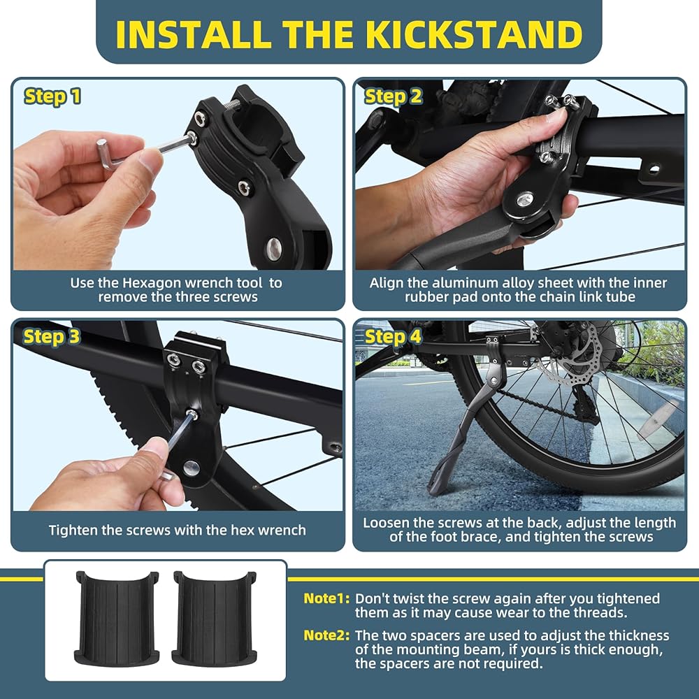 🚲【متين وخفيف الوزن】يضمن مزيج سبائك الألومنيوم والفولاذ المقاوم للصدأ مسندًا قويًا وخفيف الوزن للدراجة، مما يضيف الحد الأدنى من الوزن مع زيادة الثبات وطول العمر.