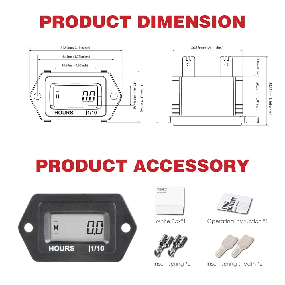 • WATER RESISTANCE : The hour meter for small engines is made by PC transparent board and 100% epoxy resin sealing craft; Prevent the strong shock between transport or cleaning