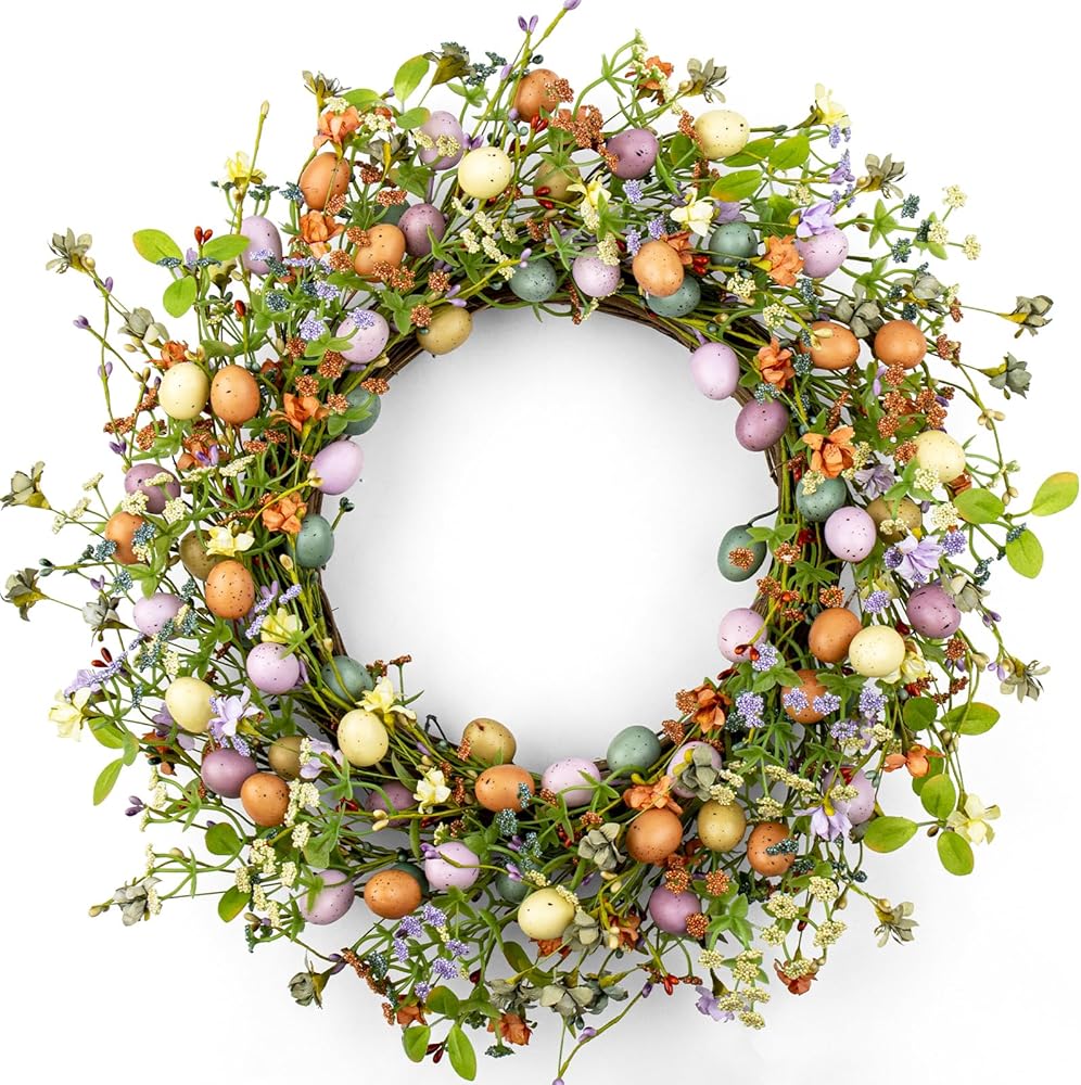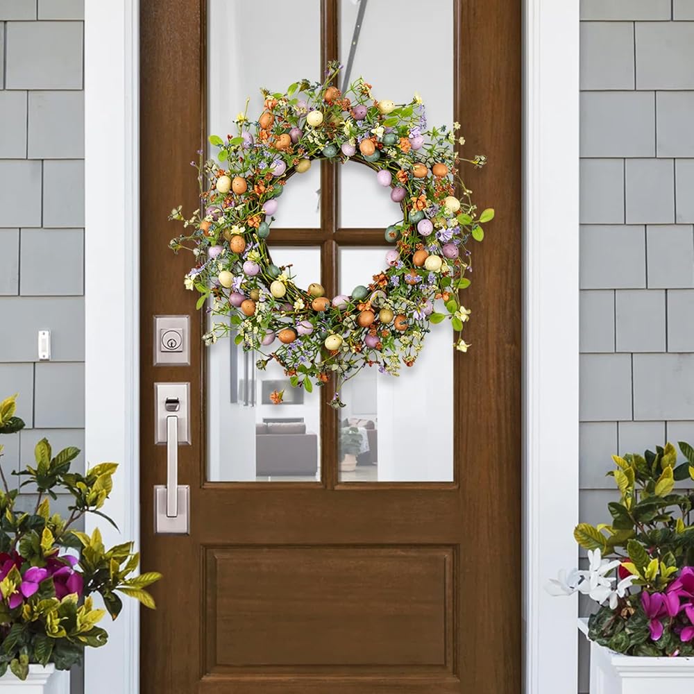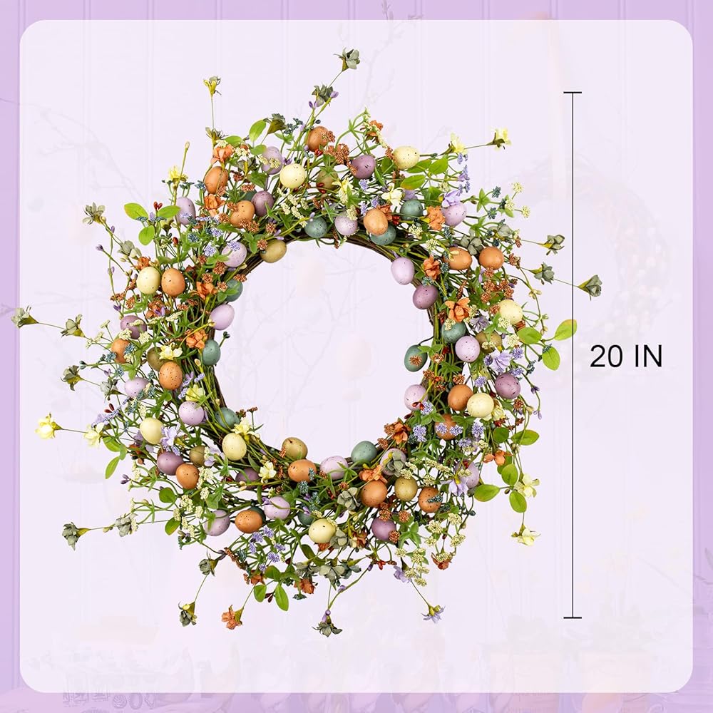 أكاليل عيد الفصح مقاس 20 بوصة من violetEverGarden للباب الأمامي إكليل عيد الفصح الملون إكليل البيض الاصطناعي مع التوت لتزيين حفلات الربيع والصيف