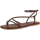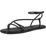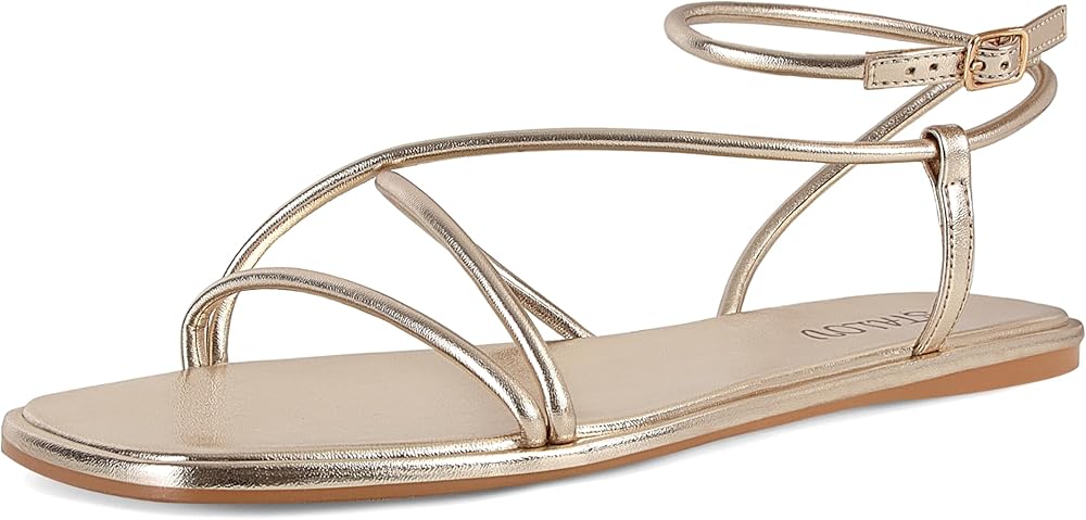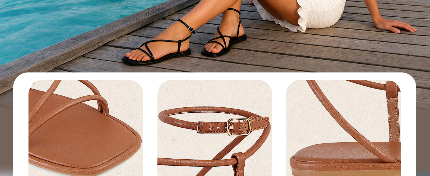 STALOV صنادل مسطحة للنساء مربعة مفتوحة من الأمام من الجلد بحزام الكاحل صنادل مسطحة أحذية مريحة للشاطئ والصيف in Kuwait