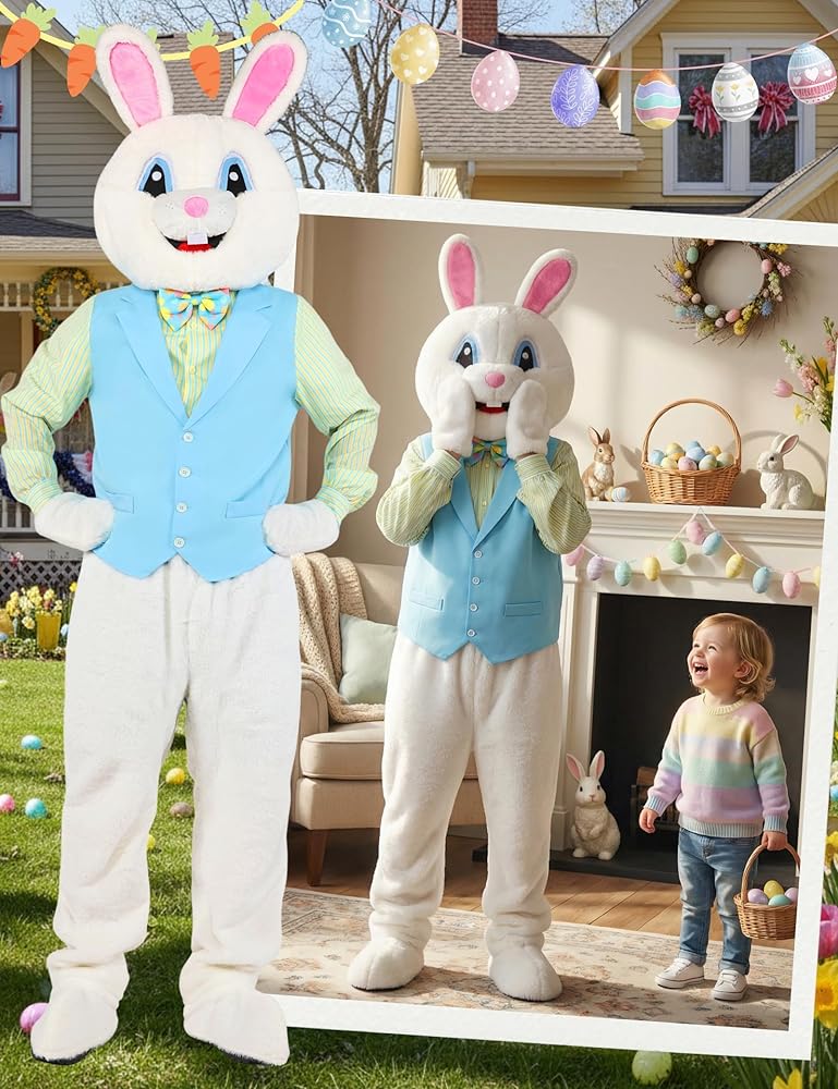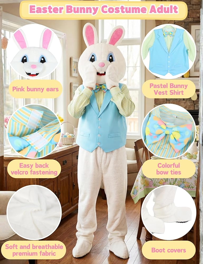 • Great for Various Occasions: Great for easter party appearances, egg hunts, school events, shopping mall promotions, community spring festivals, local parades, children's birthday parties, festive photo booths, or even cosplay apparel events. This cute plush rabbit costume adult delivers the charm of deluxe easter costume for adults, helping to create a warm and welcoming holiday atmosphere for guests of all ages