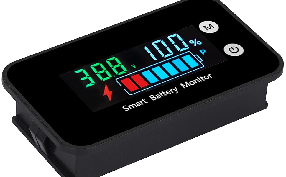 إنذار الجرس ودرجة الحرارة --- يمكن لشاشة البطارية ضبط إنذار الجرس منخفض وعالي الجهد والضغط القصير على مفتاح "M" يمكنه تبديل الجهد ودرجة الحرارة (مئوية).