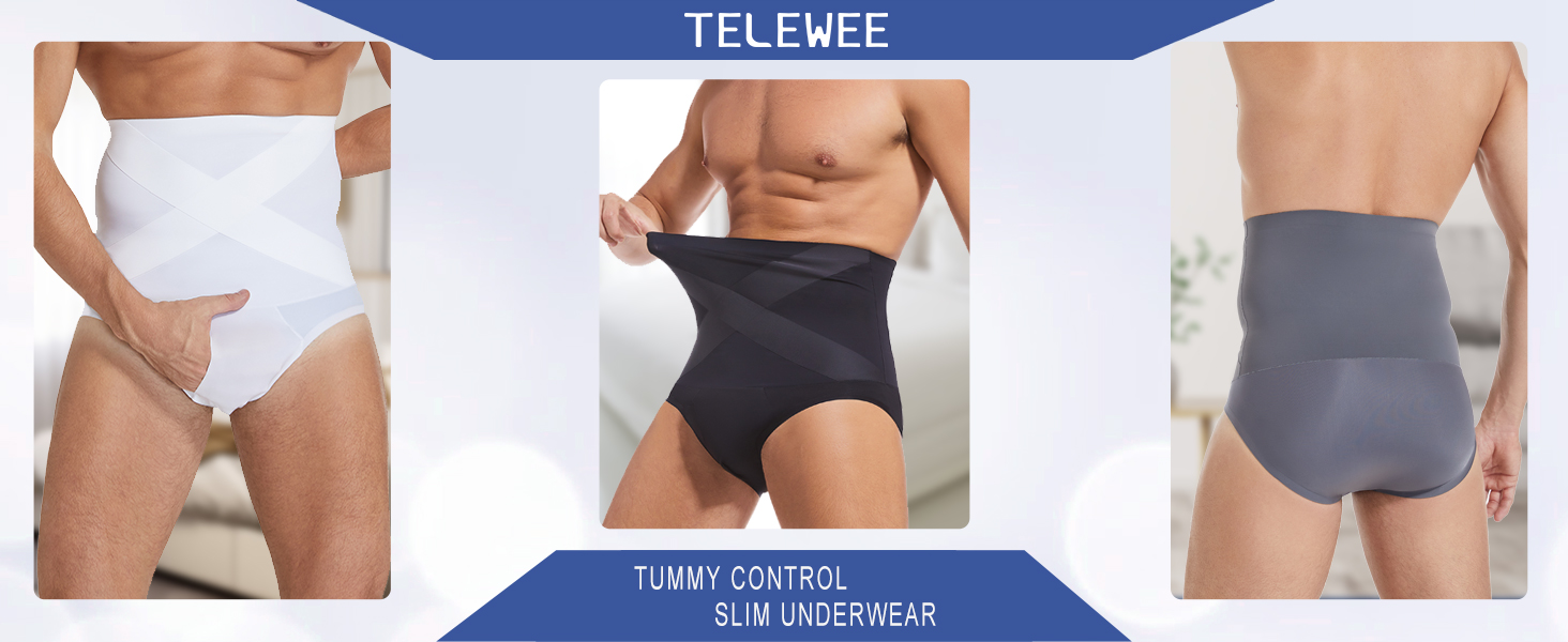 Mens Tummy Control Shapewear High Waist Slimming Bodysuit Shorts Boxer Briefs Body Shaper Body-sculpting Underwear help cinch waist and tone abdomen.