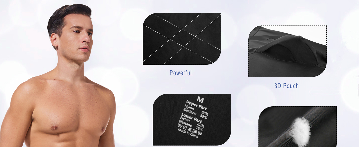 3D Pouch Support and Long-Legs Design: Our compression underwear for men is innovatively designed with a 3D contoured pouch that fit the male physiological feature. Two epoxy sides on waistband prevent slides down or roll up whenever you sit down or bend over.
