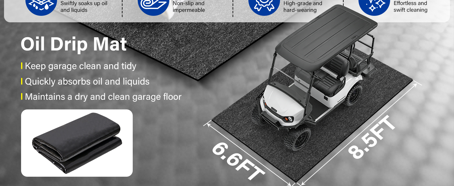 وصف المنتج: يبلغ مقاس سجادة المرآب هذه 8.5 × 6.6 قدم وهي مطوية لسهولة الشحن. قد تظهر تجاعيد بسيطة ورائحة في البداية، ولكنها ستختفي بشكل طبيعي عندما يتم وضع السجادة بشكل مسطح. يمكنك استخدامها بأمان كسجادات سيارة مقاومة للماء لأرضية المرآب أو الممر أو أي منطقة تحتاج فيها إلى منع تسرب سوائل السيارة.