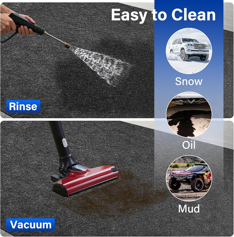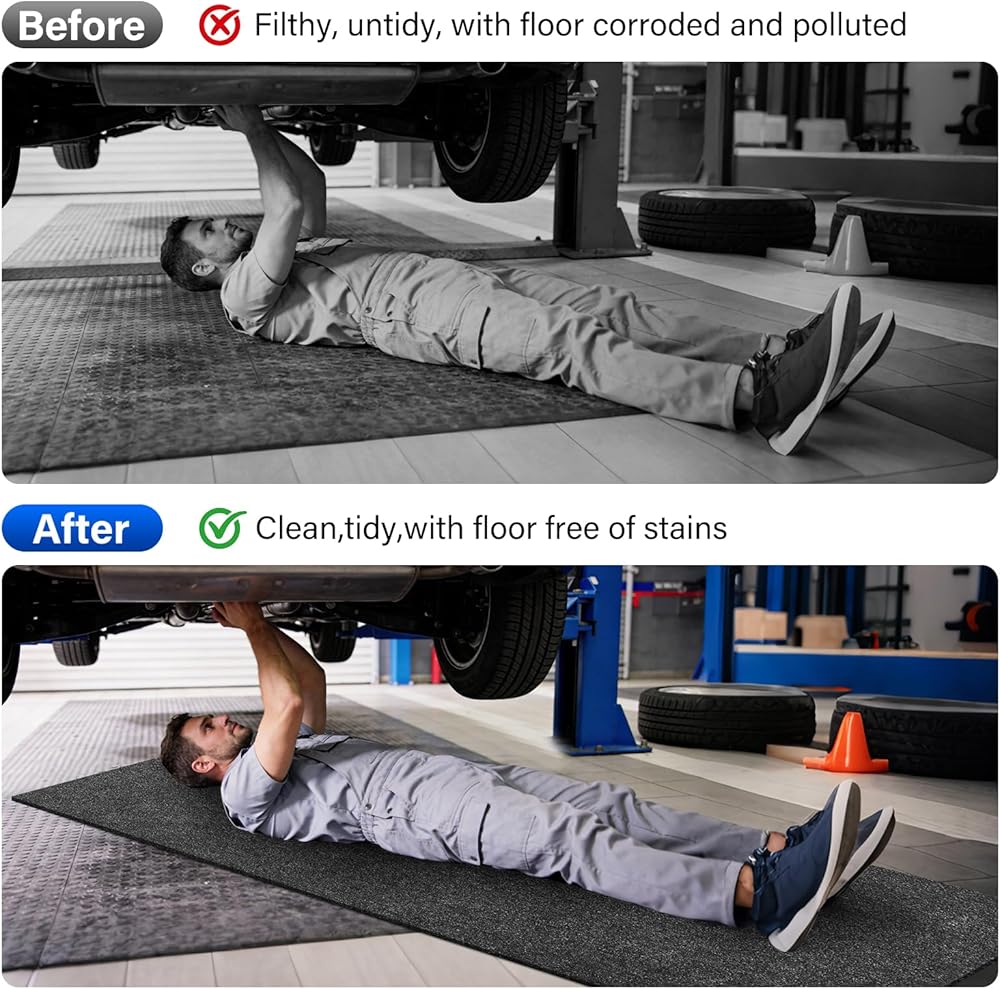 مقاس DIY قابل للتخصيص: قم بقص سجادات المرآب هذه بسهولة باستخدام مقص لتناسب أي مساحة دون أن تتآكل. مثالية كسجادات جراج للأرضيات، أو سجادات مطاطية للاستخدام الخارجي، أو سجادات جراج، أو سجادات أرضية صالة الألعاب الرياضية، أو سجادات المطبخ، أو وسادة قطرة بالتنقيط، أو وسادة رش أو سجادات واقية تحت الحوض. هذه السجادات مثالية لحماية أرضية المرآب أو الممر أو مكان وقوف السيارات من انسكابات الزيت والبقع.