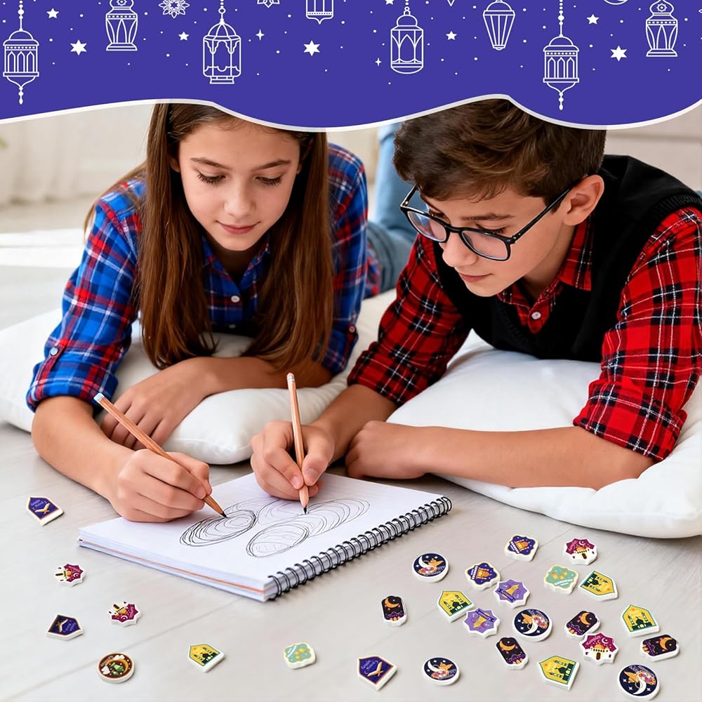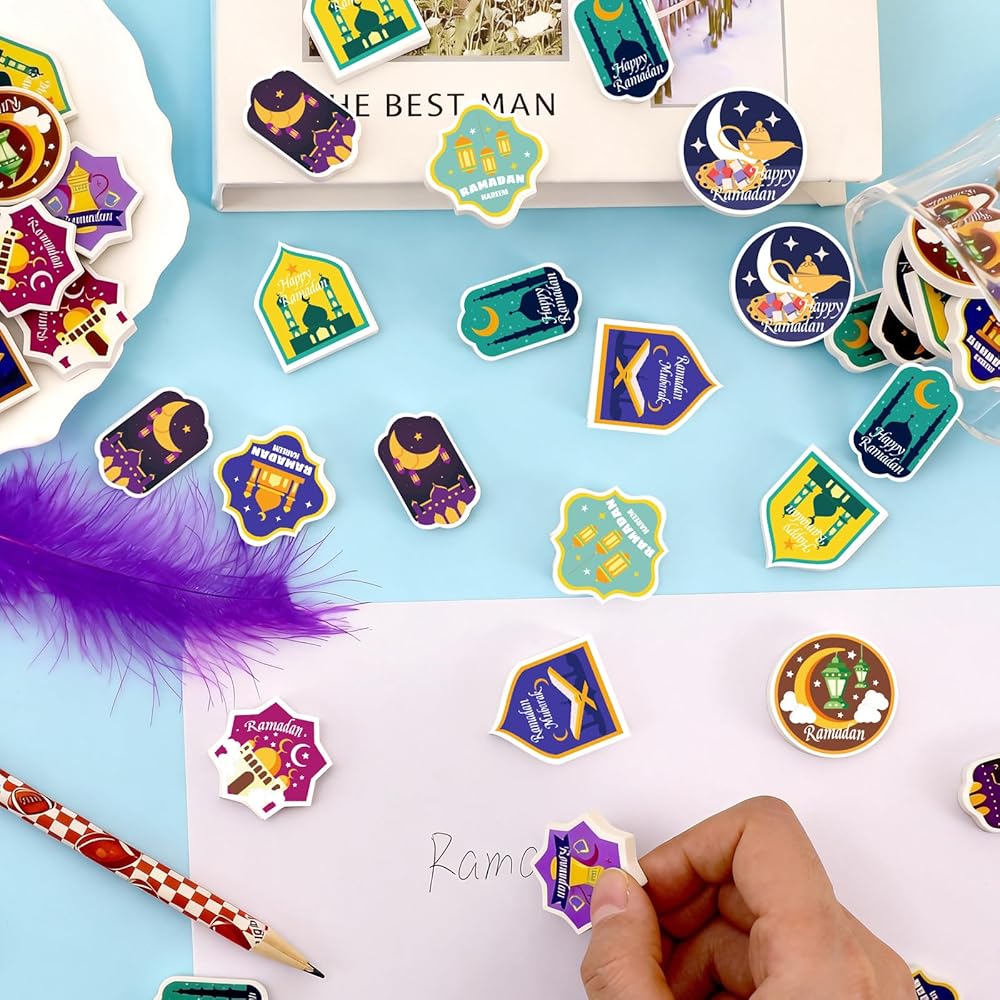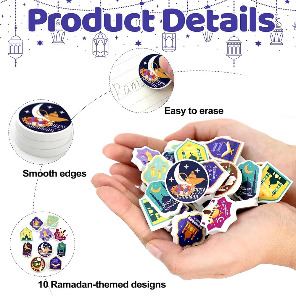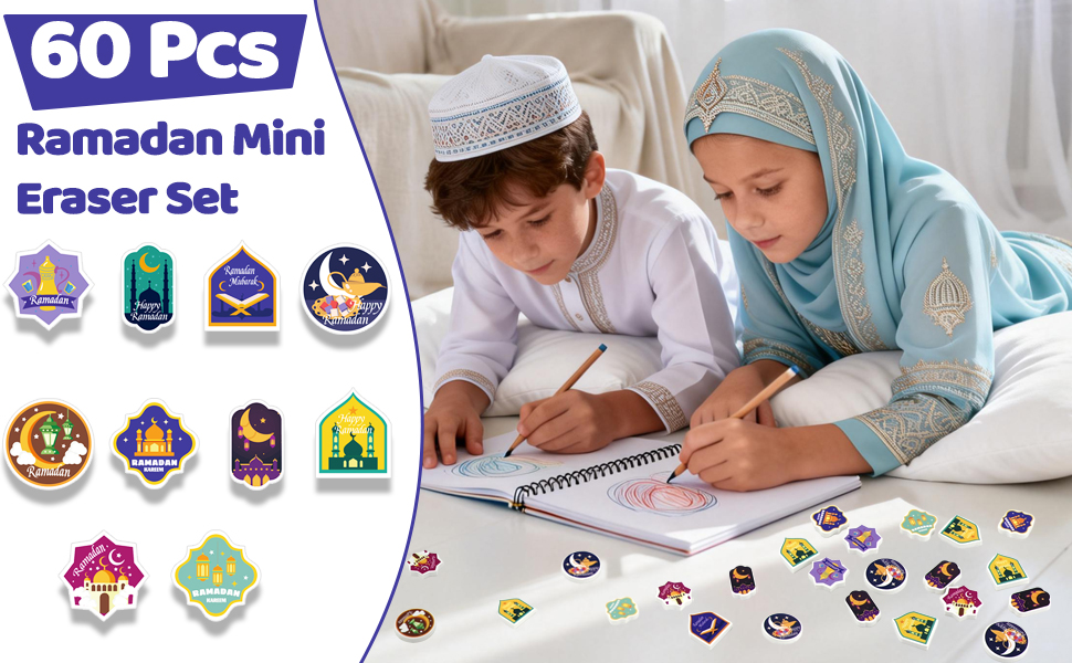 60 قطعة من ممحاة هدايا رمضان والعيد، ممحاة هدايا عيد مبارك للأولاد والبنات، هدايا رمضان الإسلامية لحفلات العيد، لوازم أنشطة الفصول الدراسية، مكافآت، حشوات حقائب الهدايا