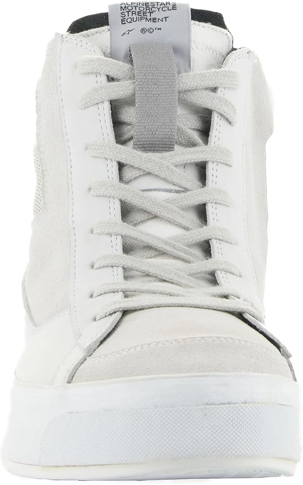 Anatomically engineered for an optimized women's fit, the Stella Stated Podium Shoe is Alpinestars modern interpretation of a retro street sneaker, combining the styling of minimalistic skate pumps with a thick vulcanized sole to create a protective yet supremely comfortable riding shoe with a stripped back, edgy style that looks great in any urban riding environment. Women's specific last is engineered and optimized to follow the natural shape and contours of women's feet for maximum rider comfort, on and off the bike. The mid sole features an 8mm platform along its entire length to offer greater elevation for shorter riders. Main upper constructed from Nubuck, canvas and split suede for the optimal blend of durability and comfort. Split suede toebox for enhanced durability. Classic lace closure at the front with a lateral zip for a secure, precise fit. Ankle collar is constructed with soft knitted mesh for enhanced rider comfort. Dual layer midsole support for optimal comfort and support. Alpinestars vulcanized rubber urban sole with bandage for sole for optimal grip and comfort, on and off the bike.. OrthoLite insole delivers long-term cushioning and high level of breathability and comfort. Integrated dual density ankle disks for impact protection with external multi-layer padding for additional coverage. Alpinestars Transversal Protection Frame (TPF) protects the foot while delivering the necessary support on the footrest without compromising the front foot flexion for superior walking comfort. According to European statutory law the CE mark is a conformity requirement for the marketing of this product. The following standards apply: Fully CE-certified. riding garment to CE Category II EN 13634:2017..