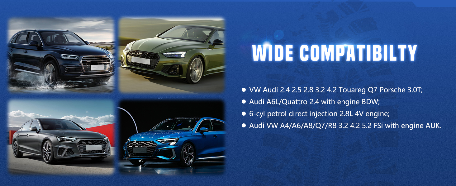 - توافق واسع للمحرك: مصمم لمحركات البنزين متعددة الأسطوانات 2.0L/2.4L/2.5L(V6)/2.8L/3.0L/3.2L/4.2L/5.0L/5.2L (تحقق من الملاءمة قبل الشراء).