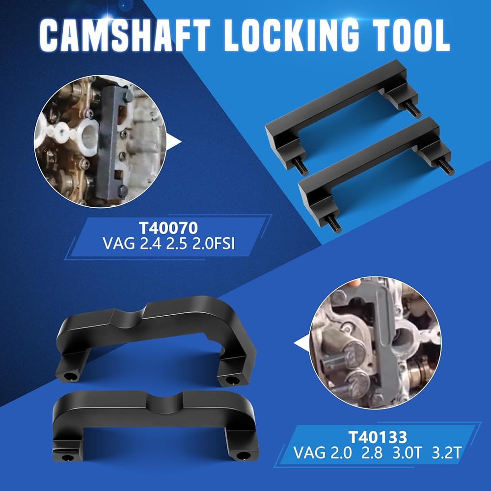 مجموعة أدوات توقيت قفل عمود الحدبات للمحرك، متوافقة مع VW Audi 2.0 2.4 2.5 2.8 3.0T 3.2 4.2 5.0 5.2، طوارق Q7 بورش 3.0T، A4 A6 A6L A8 Q5 Q7 R8، استبدال OEM T40133 T40070 T40058 T10172