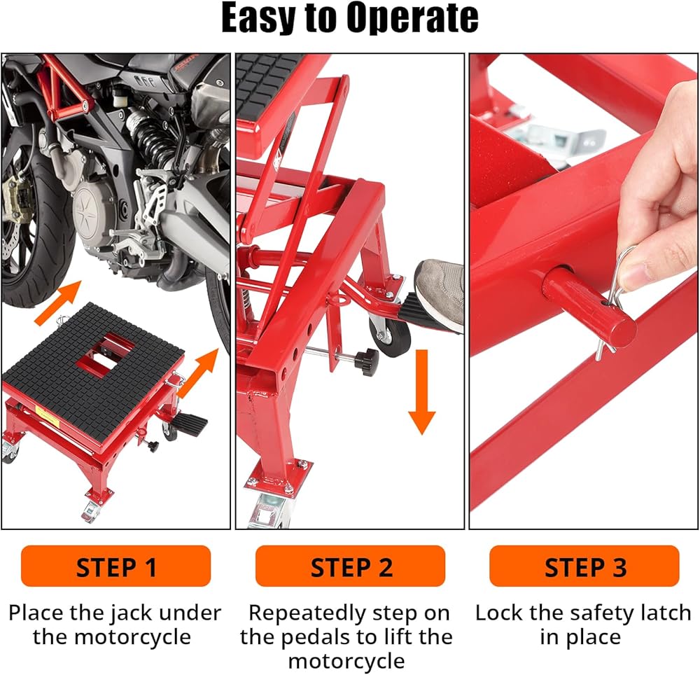 Durable Steel Construction: Built from high-quality steel, this motorcycle lift scissor jack ensures exceptional strength and stability for all your maintenance and repair needs.