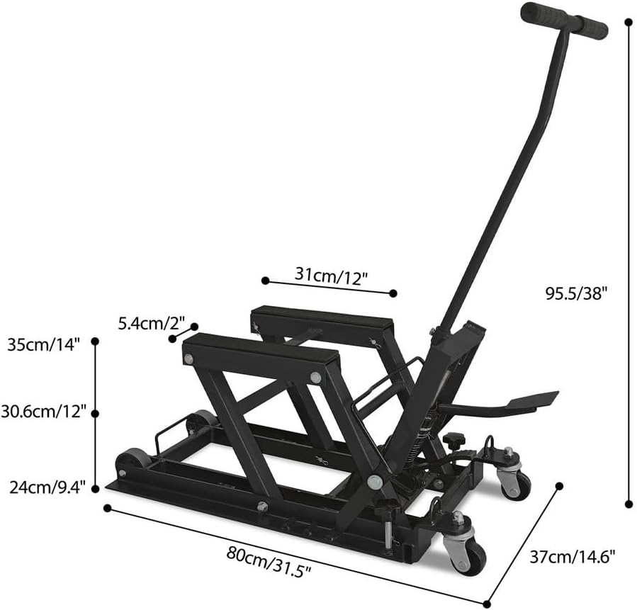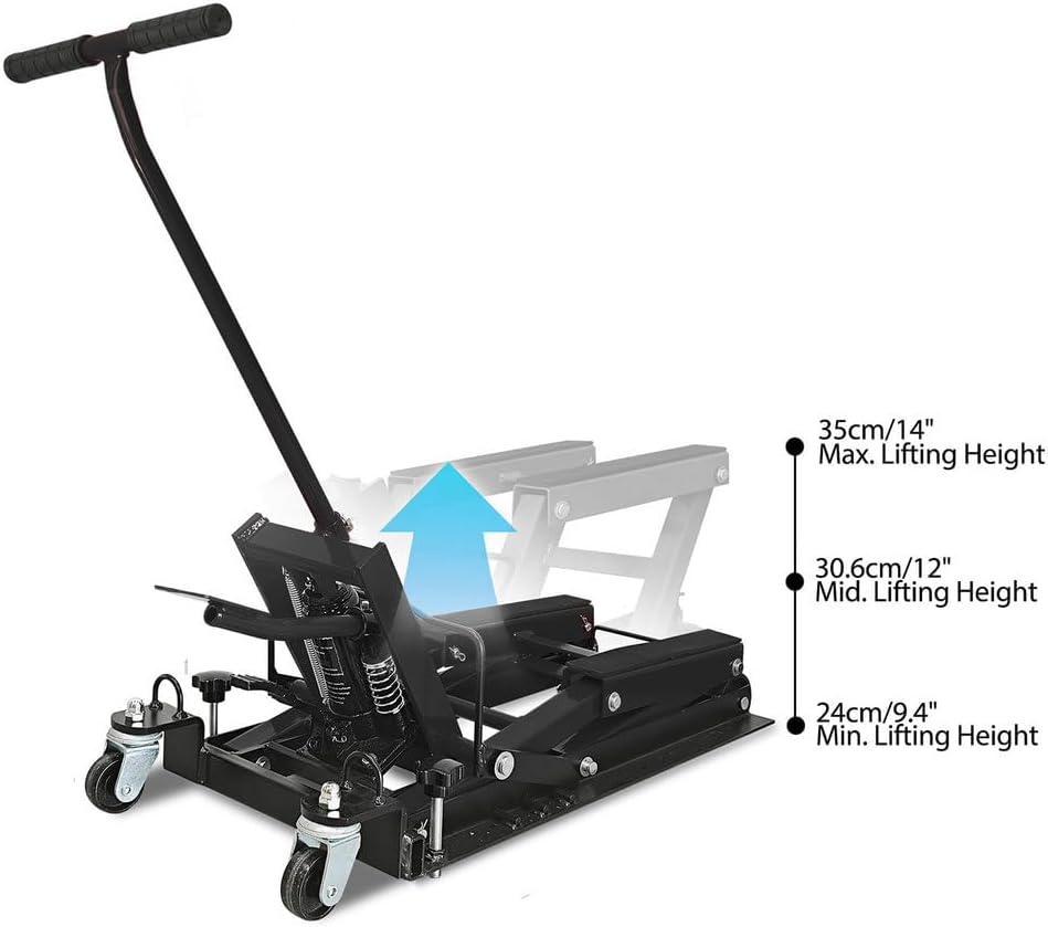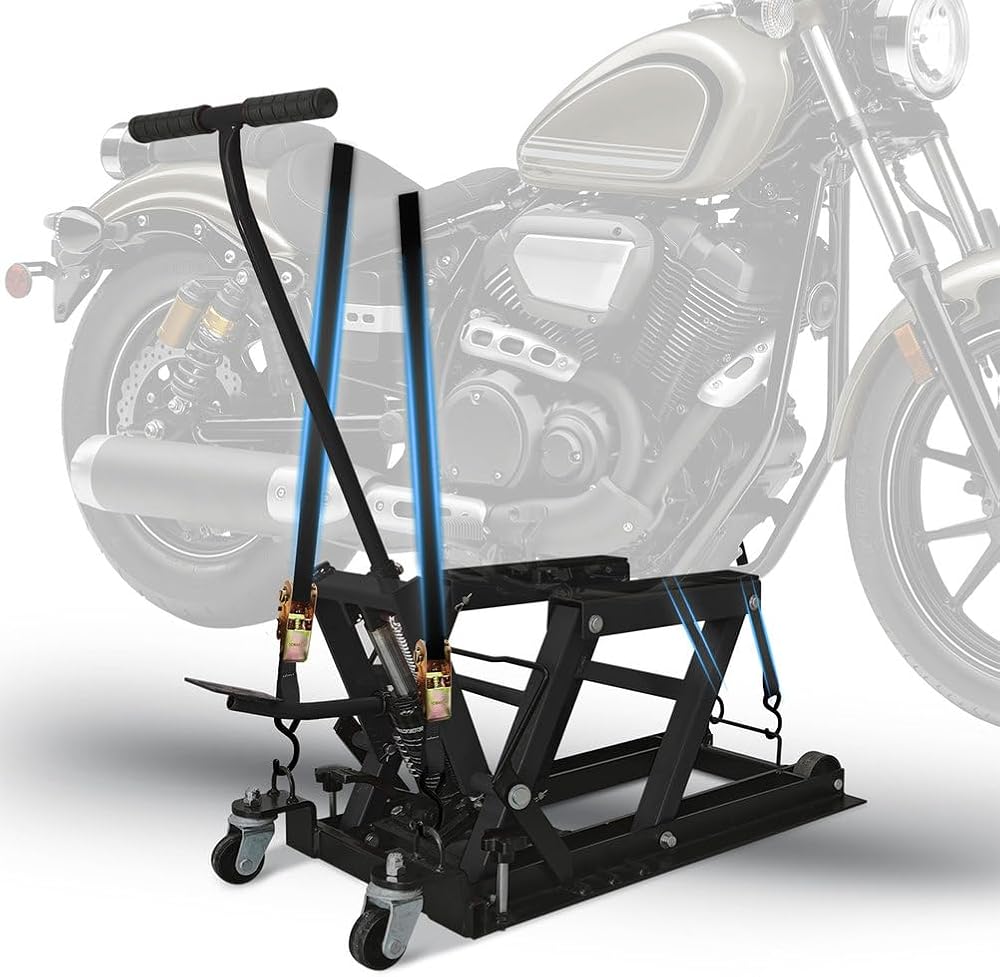 - High Weight Capacity: Safely lifts up to 1500 lbs (0.7 tons), suitable for motorcycles, cruisers, touring bikes, and ATVs.