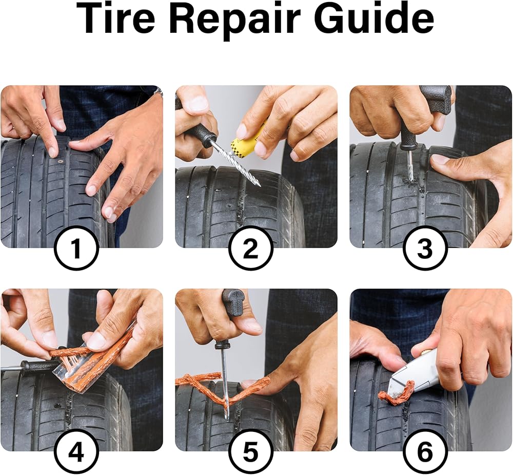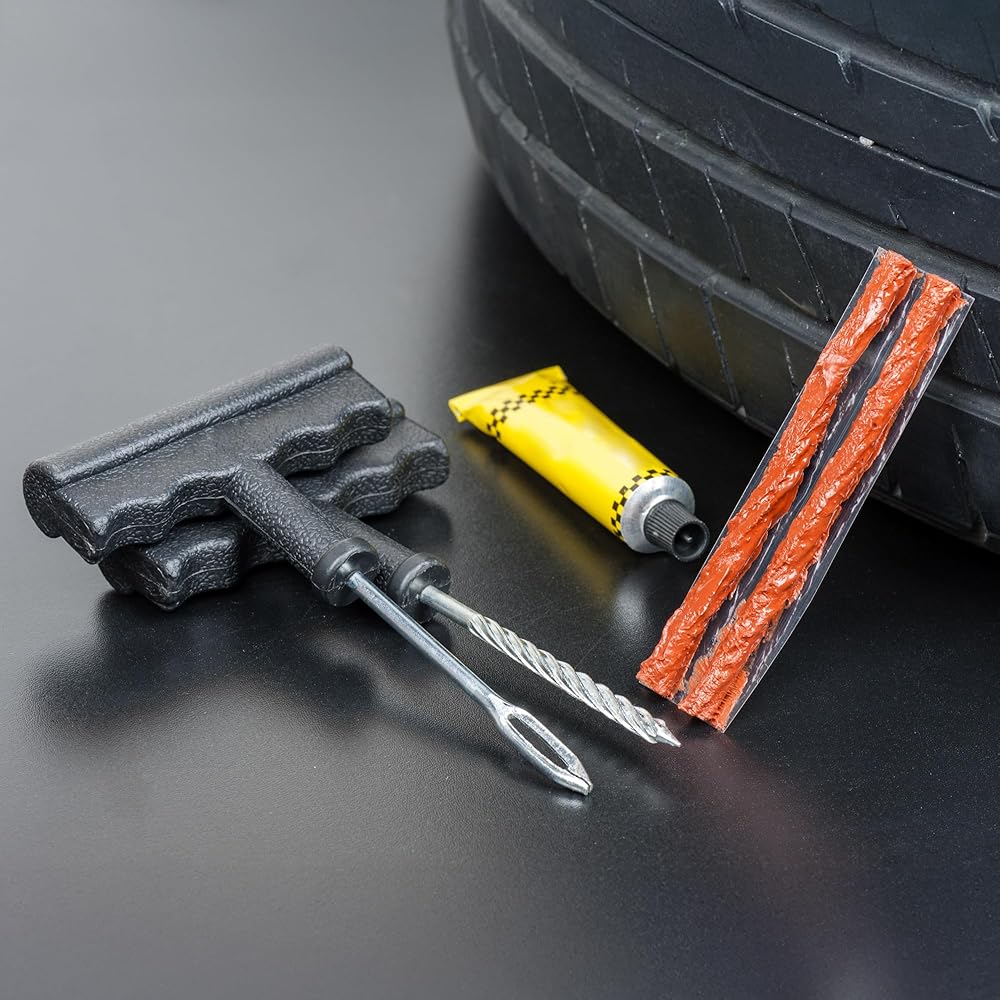 الحل الكامل لإصلاح الإطارات: يتضمن كل ما تحتاجه لإصلاح الإطارات المسطحة بسرعة وسهولة، بدءًا من الأدوات المتينة ذات المقبض على شكل حرف T وحتى سدادات الإطارات القوية.