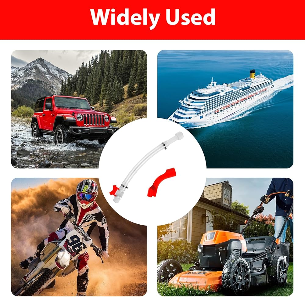 Universal 5-Gallon Gas Can Hose Compatibility: Seamlessly integrates with VP Racing Tuff Jugs and most standard 5-gallon racing fuel containers for versatile use.