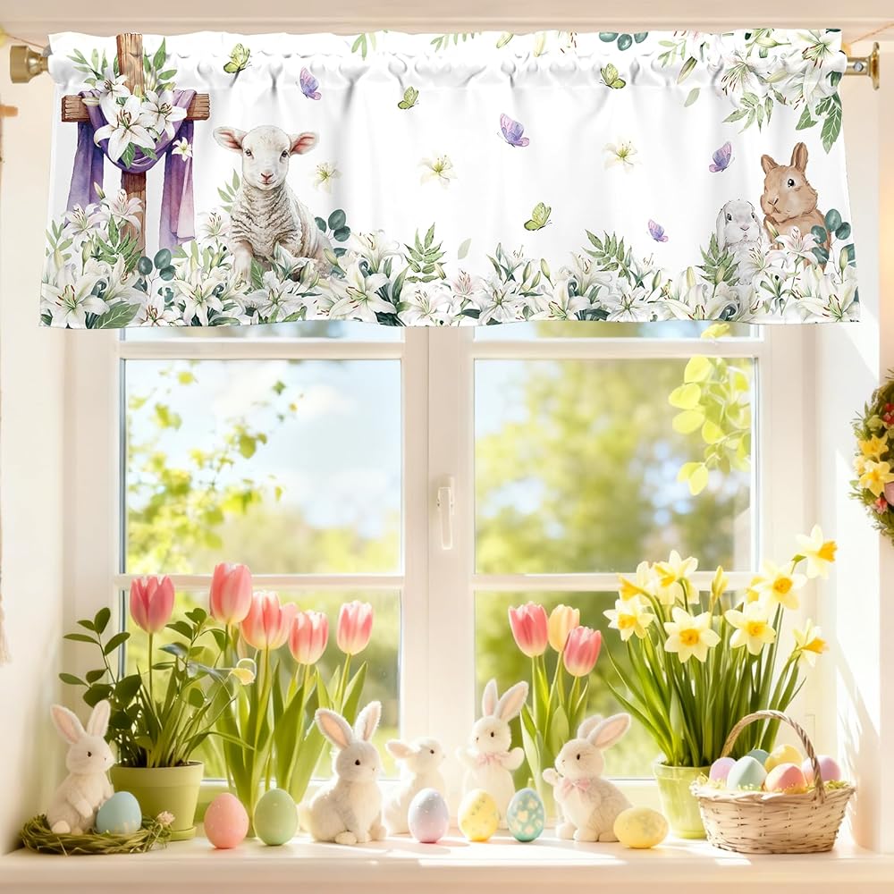 【خامة عالية الجودة】كورتينا دي باسكوا الخاصة بنا مصنوعة من نسيج بوليستر عالي الجودة بنسبة 100%، وهو ناعم ومتين. يمكنه تصفية الوهج القاسي مع إضافة لمسة زخرفية إلى منزلك، مما يضفي على مساحتك أجواء عيد الفصح الجميلة.
