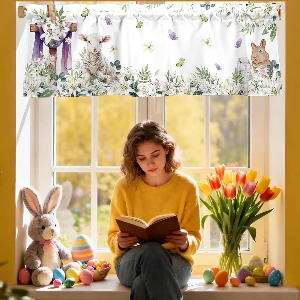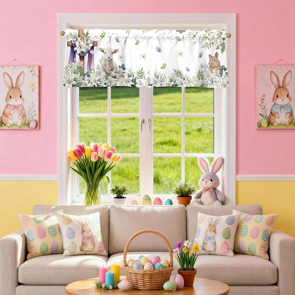 【هدية احتفالية】غلف منزلك بسحر عيد الفصح مع الستارة القصيرة الخاصة بنا! إنها أكثر من مجرد قطعة زخرفية - إنها المفتاح لفتح أجواء عيد الفصح المشرقة والمبهجة بسرعة في أي مكان. مثالية كهدية للأقارب والأصدقاء، فهي تملأ منازلهم بروح عيد الفصح المبهجة.