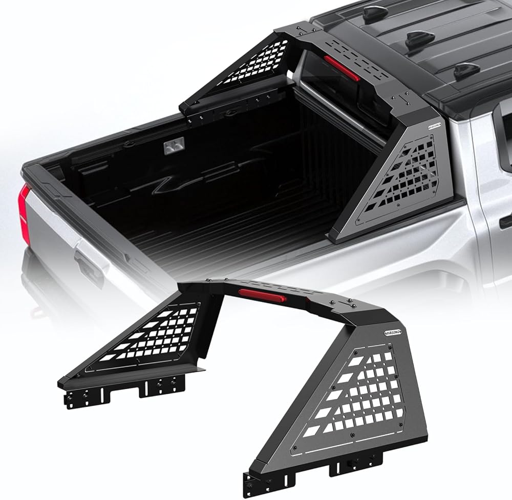 هيكل عالي التحمل مع دفاع مزدوج: يتميز رف مطاردة قضيب لف الشاحنة بإطار فولاذي كربوني سميك مع دفاع مزدوج: طلاء مسحوق أسود مزخرف + طلاء إلكتروني، مقاوم لدرجات الحرارة القصوى (-20 درجة فهرنهايت ~ 150 درجة فهرنهايت).