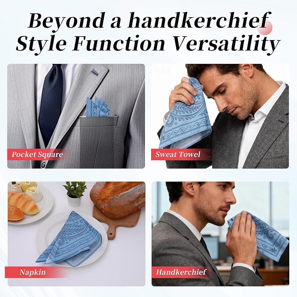 مناديل قطنية ناعمة وقابلة لإعادة الاستخدام للرجال: هذه المناديل الرجالية مصنوعة من نسيج مناديل قطنية ناعمة بنسبة 100% - لطيفة ومسامية ومتينة. مثالي للاستخدام اليومي، أو حفلات الزفاف، أو السفر، وسهل الغسيل في الغسالة وإعادة الاستخدام دون فقدان النعومة.