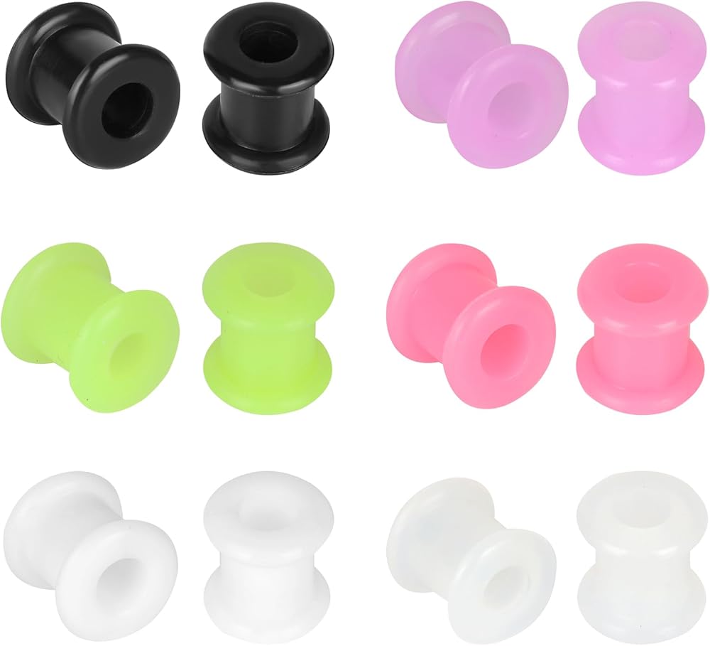 VERSATILE SET: 12-piece silicone ear tunnel plug set featuring 6 different colors - pink, green, white, purple, clear, and black