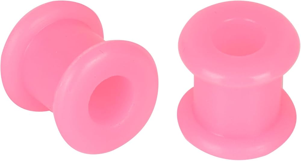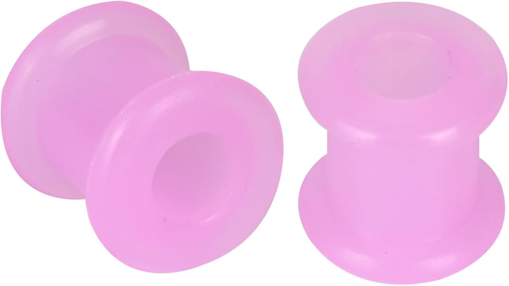 Express your unique style with this versatile set of 12 silicone ear tunnel plugs. The collection features 6 eye-catching colors including pink, lime green, white, lavender, and black, perfect for mixing and matching your look. Made from smooth silicone material, these gauges offer both flexibility and comfort for everyday wear. Each tunnel plug features a classic flared design that helps secure the jewelry in place. The set includes pairs in various sizes, making them ideal for those maintaining stretched ears or gradually sizing up. The lightweight construction and rounded edges provide comfortable wear throughout the day. These tunnel plugs are easy to insert and remove, while their durable silicone construction makes them practical for regular use. The matte finish gives these plugs a sophisticated look that works well with any style. Please note: Always ensure proper sizing before use and follow appropriate stretching practices.
