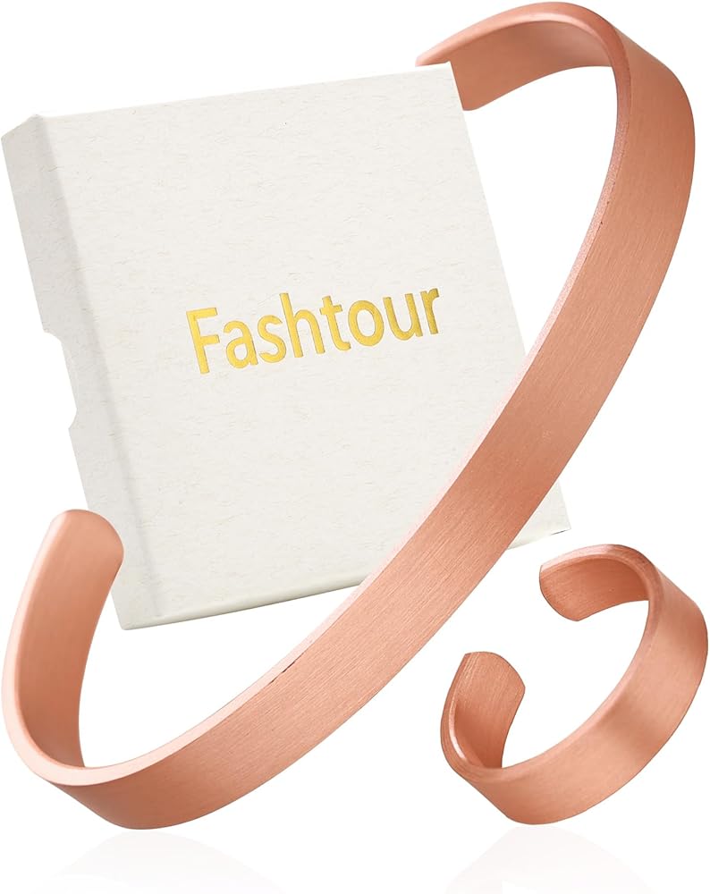 [Crafted copper by Fashtour]: Carefully made from quality copper, each Fashtour bracelet is designed with attention to materials and craftsmanship. Our bracelets do not contain intentionally added metals like nickel, lead, cadmium, or PFAS. Unlike bracelets that may use mixed alloys or coated surfaces, Fashtour bangles feature a raw, solid, and uncoated finish that embraces the natural look of copper. Over time, your bracelet may develop a patina—a natural process that reflects the character of untreated copper. To refresh its shine, clean with lemon juice and salt or a copper-safe polish.