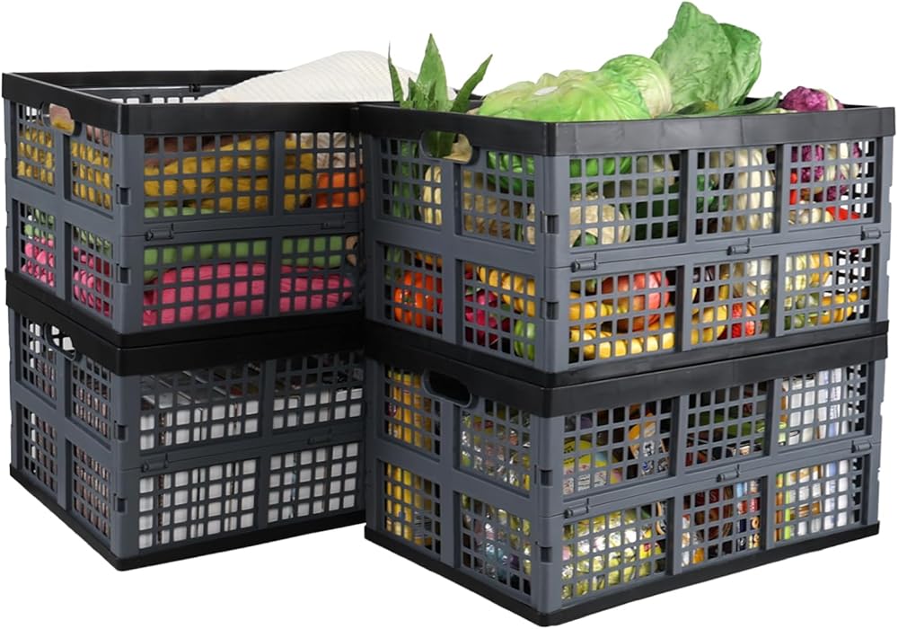 4-Pack 42 L Stackable Plastic Collapsible Storage Crate