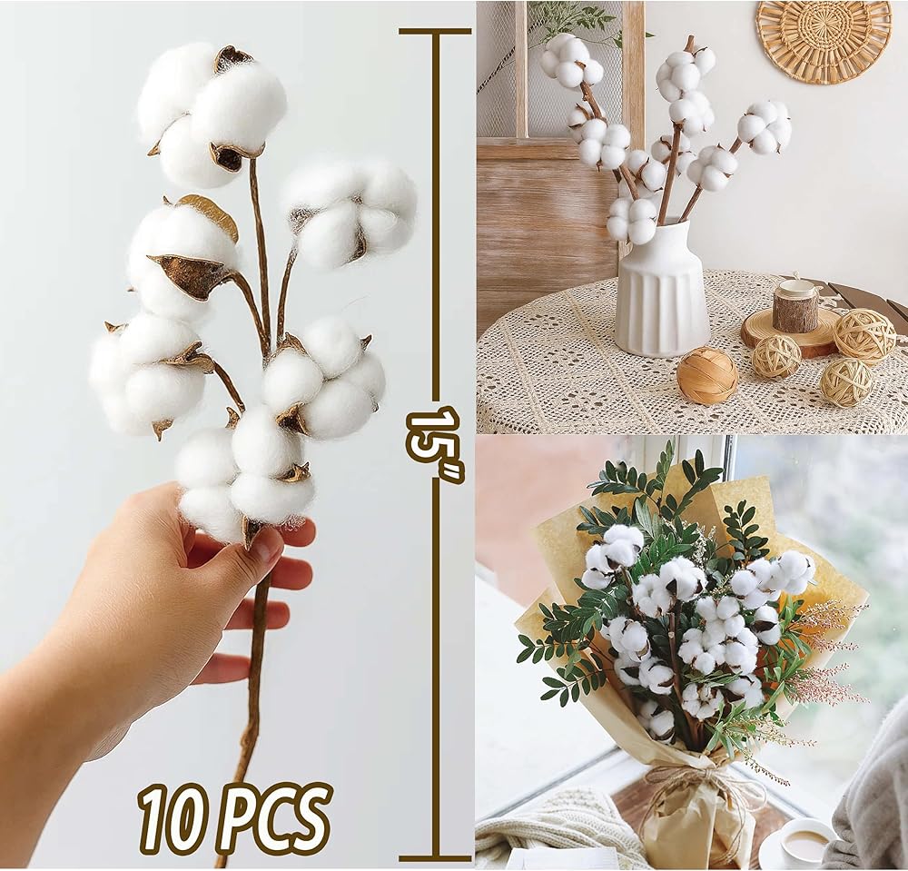 تشتمل العبوة على: سوف تحصل على 10 فروع ديكور من القطن الفاخر، مقاس كل منها 38.1 سم. تحتوي كل جذع على 3-6 كرات قطنية منفوشة (إجمالي أكثر من 20 كرة)، مثالية لملء المزهريات أو إنشاء ترتيبات على طراز المزرعة.