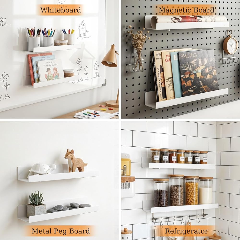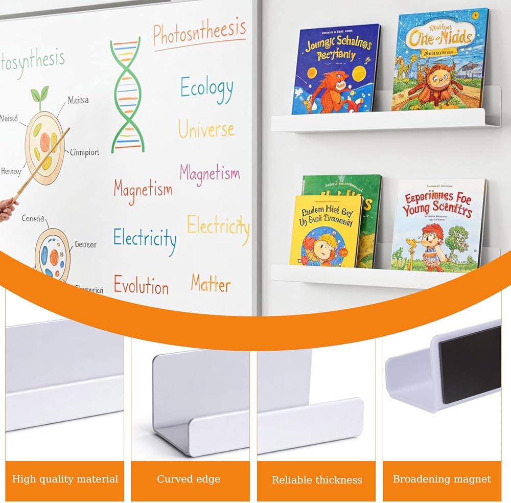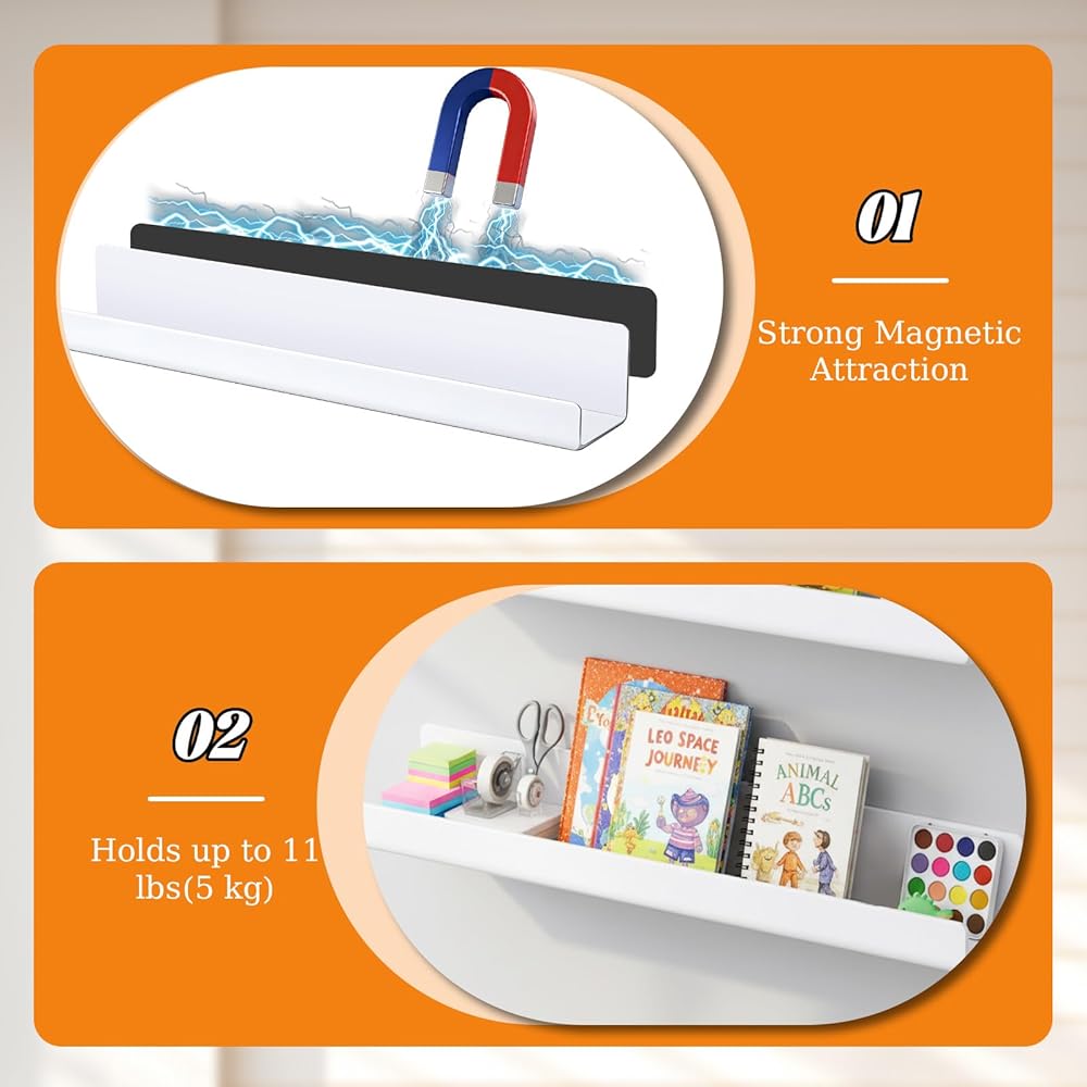 Wide Application: Ideal for organizing books, art prints, toys or photos. Perfect as a classroom bookshelf for meeting rooms, bedrooms, and more, these magnetic shelves for classroom offer convenient storage for teachers and students alike. They are easy to move and can be used on any magnetic or ferrous surface.