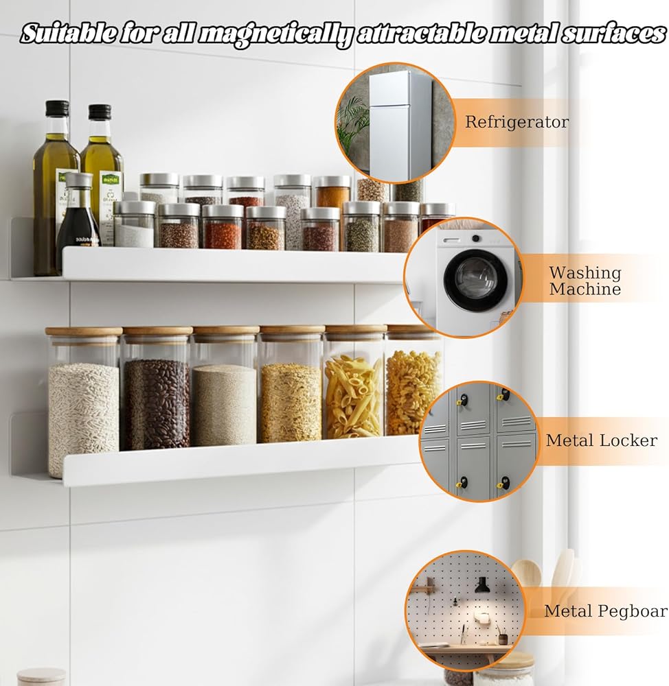Durable and Long-Lasting: Made of thickened acrylic, they are lightweight, strong, and easy to clean, making them a durable choice that won't break easily. Versatile storage solution for kitchens, offices, classrooms or any metal-surfaced area. Doubles as a refrigeratororganizer or display rack.