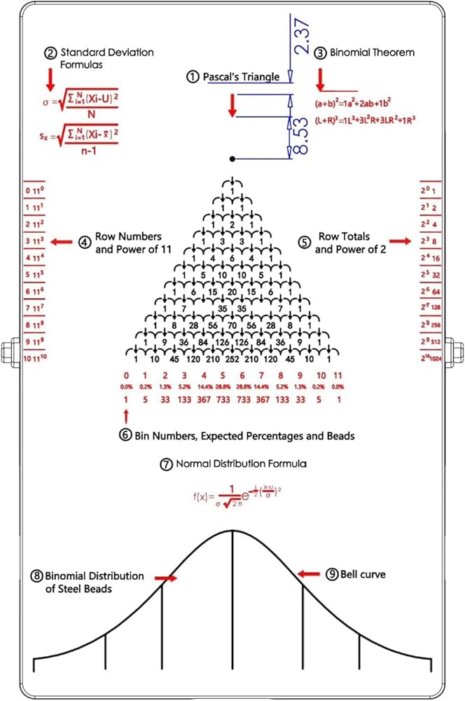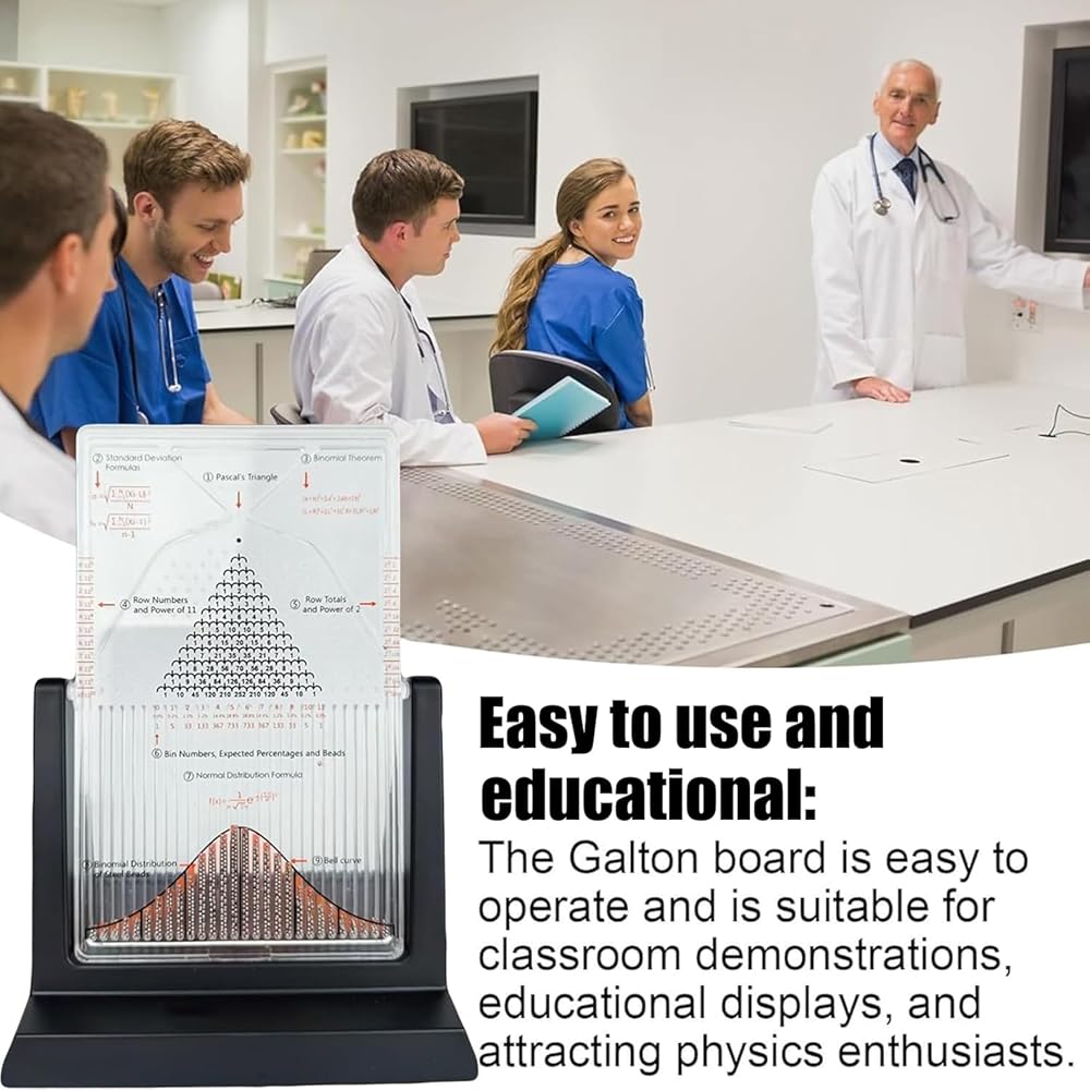 【Desk Galton Board Demonstration】This compact physics lab teaching tool demonstrates statistical laws through beads cascading over precision-arranged pegs, creating measurable distribution patterns ideal for bability education.