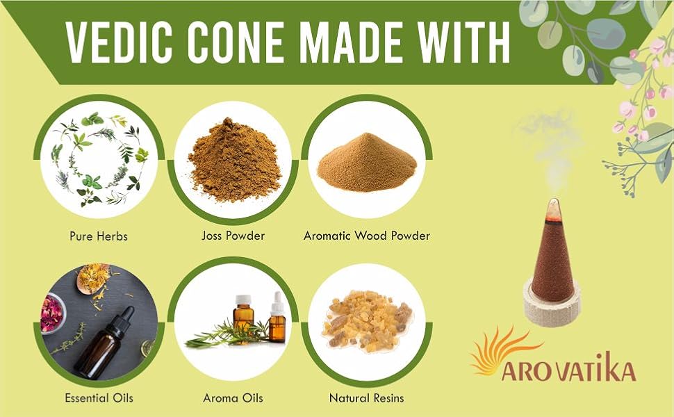 ARO VATIKA Vedic Natural Masala 120 مخروط بخور في عبوة من 12 صندوقًا | 12 عطرًا متنوعًا | الأفضل للصلاة والريكي والتأمل والاسترخاء | وقت الحرق - 25 دقيقة (متنوع) in Kuwait