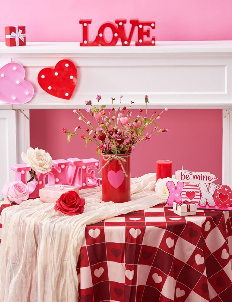 زينة عيد الحب: القطعة المركزية لعيد الحب للطاولة هي الديكور المثالي لاحتفالات عيد الحب. لا يضيف ديكور عيد الحب الفريد هذا جوًا رومانسيًا إلى طاولة الطعام الخاصة بك فحسب، بل يصبح أيضًا نقطة قوة في أي ركن من أركان منزلك. سواء كان ذلك لعشاء عيد الحب أو الديكور اليومي، فإن ديكورات عيد الحب هذه تجلب الدفء والرومانسية إلى مساحتك.
