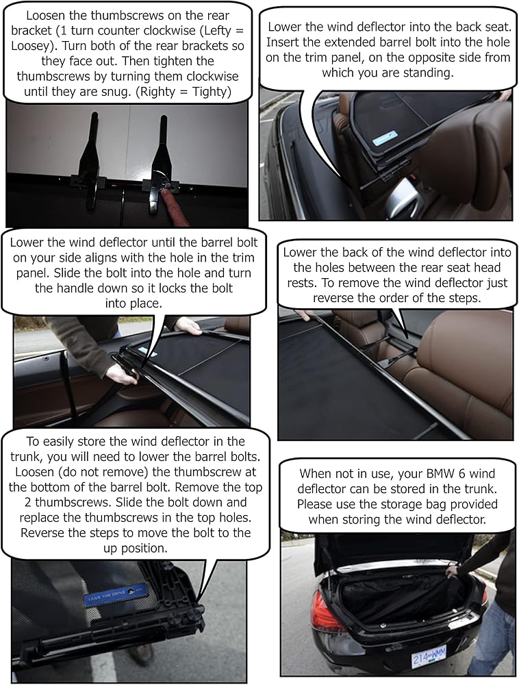• A wind deflector extends your top down season: with the wind deflector redirecting the wind over the back of your convertible, you can drive with top down earlier in the Spring and later into the Fall and in more comfort thru out the top down season. Leaving you looking and feeling great. No more hats or hair bands or ear muffs.