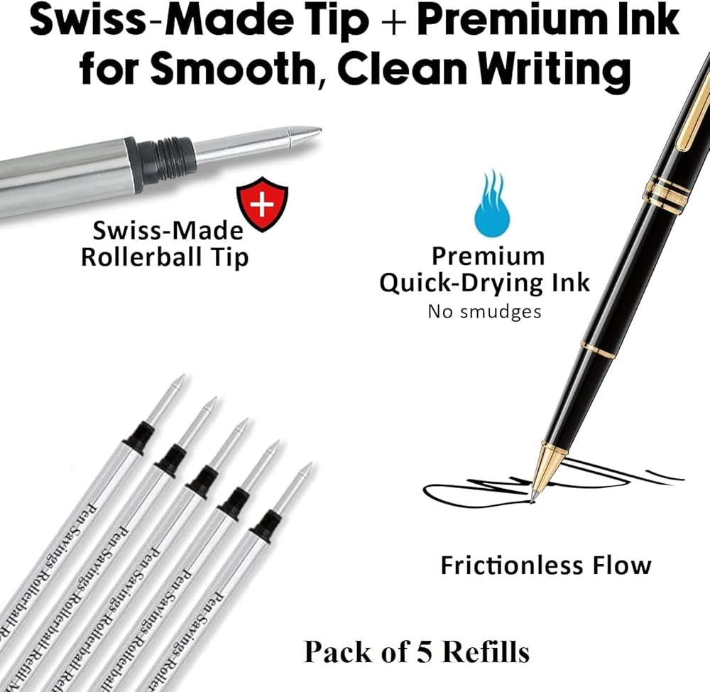 عبوات قلم الكرة الدوارة لتوفير الأقلام مون بلان بغطاء، نقطة متوسطة 0.7 مم، كتابة سلسة بدون احتكاك، طرف ملولب، 5 عبوات (أسود)