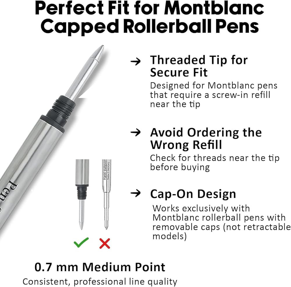 - التوافق: مصمم خصيصًا لأقلام الكرة الدوارة المغطاة من Montblanc، مما يضمن ملاءمة مثالية وأداء كتابة مثالي