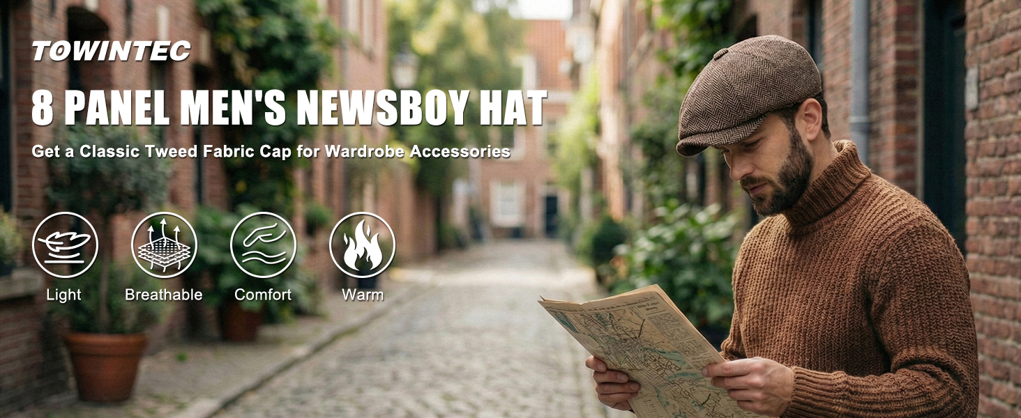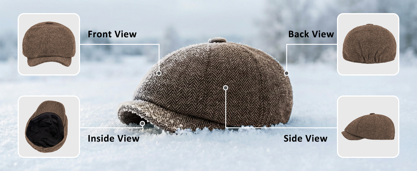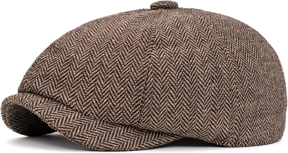 Men's newsboy caps crafted from premium wool blend fabric, this 8 panel paperboy cap balances comfort and breathability for all-day wear. Its distinctive texture lends a unique charm and contemporary flair, making it ideal for golf, driving, camping, and various other activities.