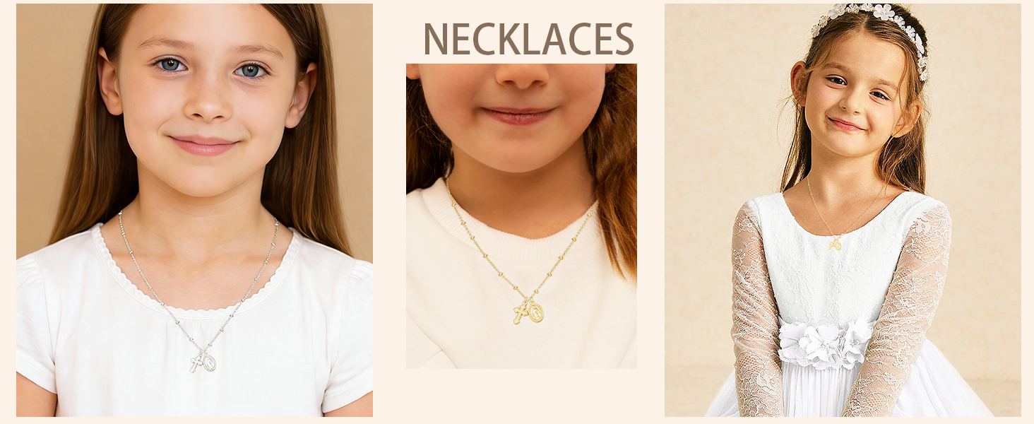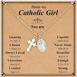 avotto الهدايا الكاثوليكية مريم العذراء الصليب قلادة للفتيات الأطفال في سن المراهقة الفتيات النساء، الكاثوليكية عيد الفصح سعيد تأكيد المناولة الأولى المعمودية الدينية العصرية الاشياء الهدايا والمجوهرات 16 + 2.5 بوصة