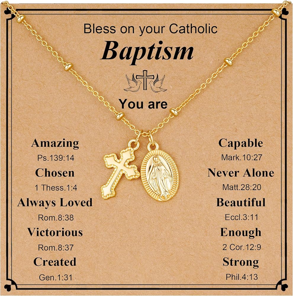 • هدايا المعمودية: تتميز هذه القلادة الرائعة بقلادة مريم العذراء مع صليب مصقول، ولها أهمية دينية كاثوليكية خاصة، وهي هدية دينية مثالية.