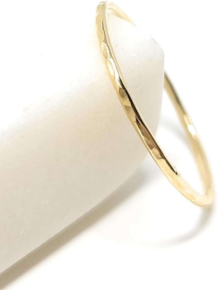 Made from solid gold, the Thin Hammered Stacking Ring features a timeless and minimalist design that never goes out of style. From day to night, this dainty gold ring adds a hint of shine to any outfit.