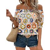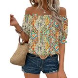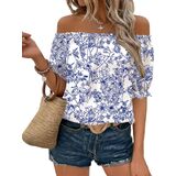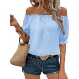 Womens Short Sleeve Tops Round Neck Ladies Tops and Blouses. Crafted from ultra-soft, premium fabric, this off the shoulder tops for women offers breezy comfort while remaining breathable for all-day wear. The top's relaxed fit with elasticated sleeve detailing ensures a chic silhouette. Its unique convertible design allows you to wear this cute summer tops for women as a classic round neck top for a polished look, or effortlessly style it as a trendy off-shoulder blouse for a touch of romance.Pair it with shorts for a casual outing or dress it up with a skirt or slacks for a sophisticated ensemble. This women top is effortlessly chic with Jeans, Leggings, or your favorite summer shorts.