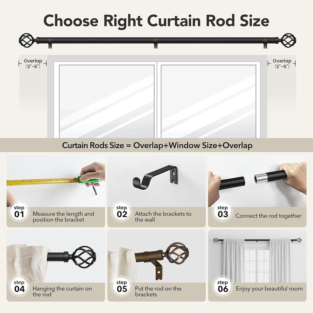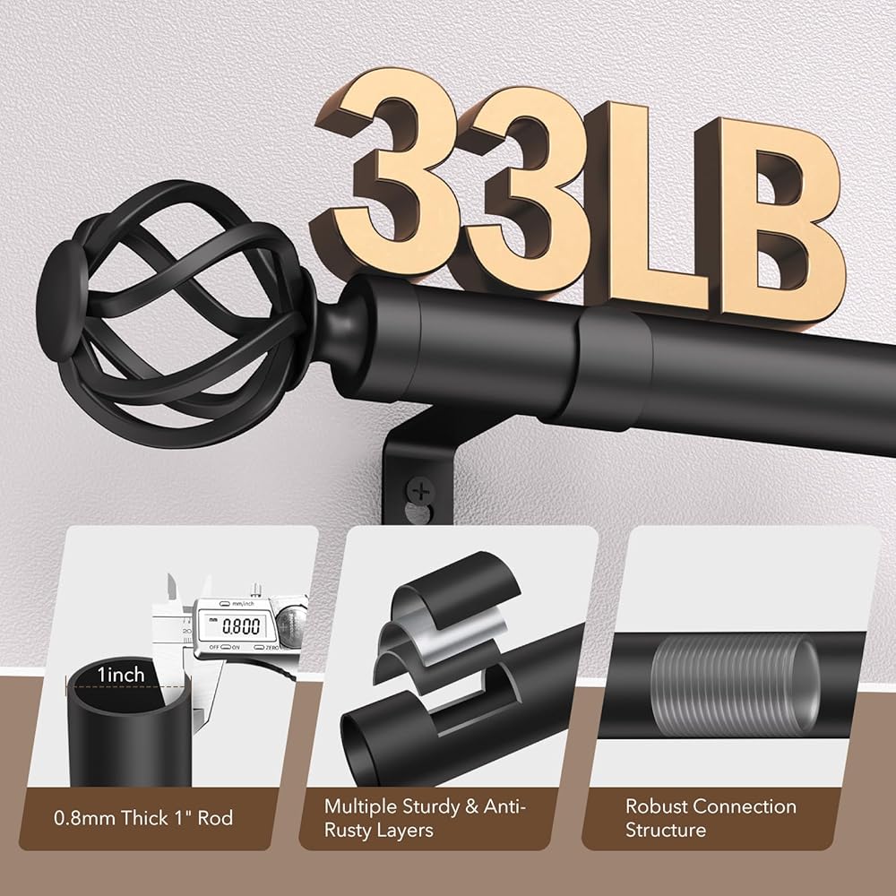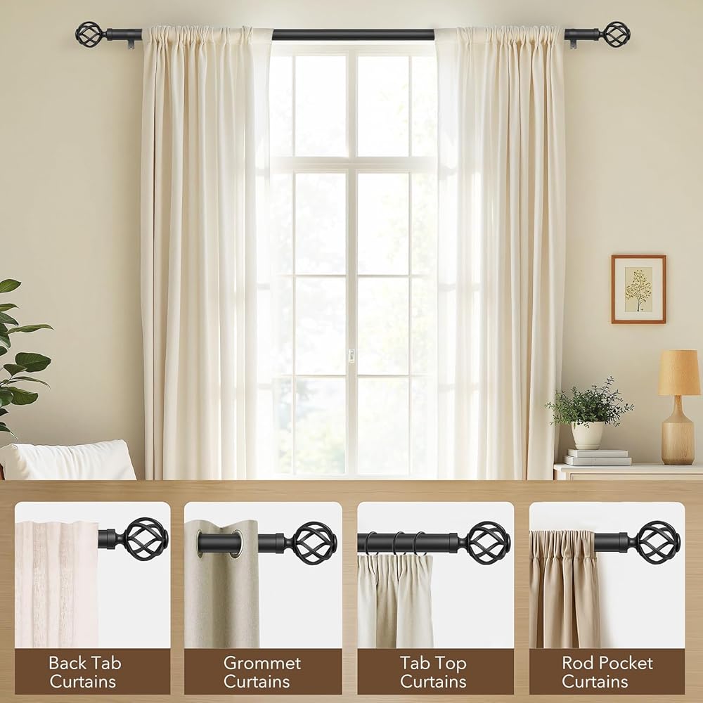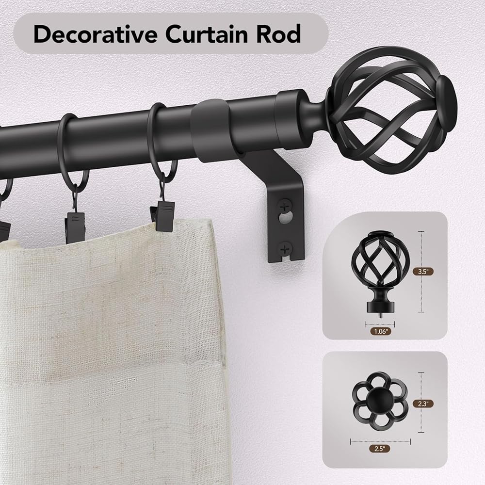 • قضيب ستارة مزخرف - يتميز قضيب الستارة الأسود الأنيق هذا بقفص ملتوي فريد وأنيق من الزهور في كلا الطرفين ويمكن مطابقته مع أنماط النوافذ والستائر المختلفة. إنه مناسب جدًا للديكور الداخلي/الخارجي في الأنماط القديمة والمزرعة والريفية والصناعية والحديثة، مما يضيف الدفء إلى منزلك.