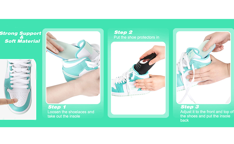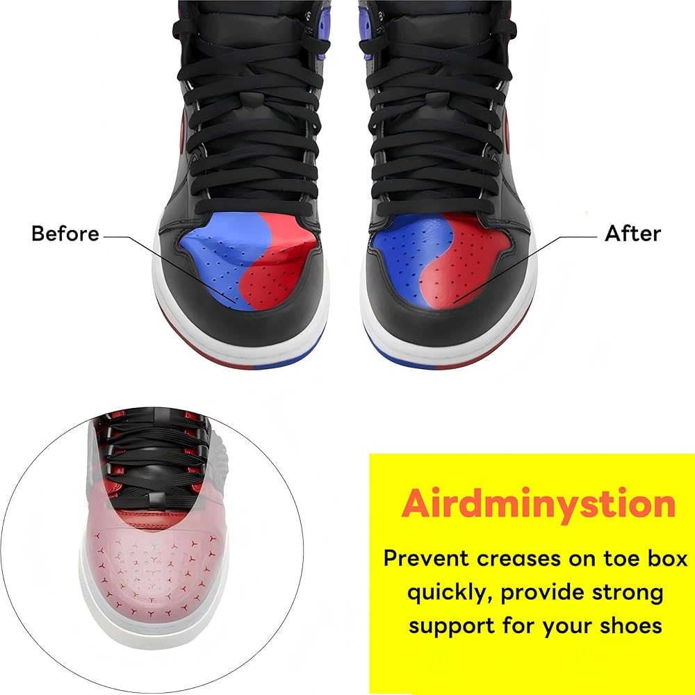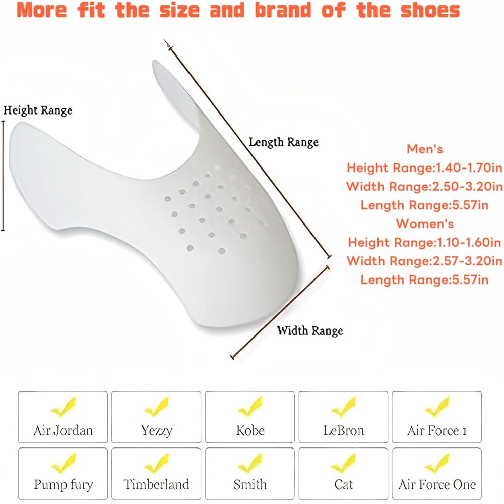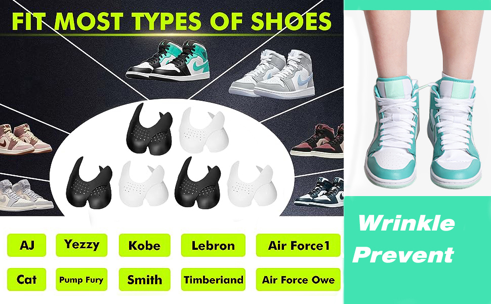 تصميم مضاد للتجاعيد: تساعد واقيات تجاعيد الأحذية في الحفاظ على شكل حذائك الرياضي وتمنع تكون التجاعيد القبيحة في منطقة صندوق أصابع القدم أثناء الارتداء، مما يحافظ على مظهر حذائك جديدًا وجديدًا