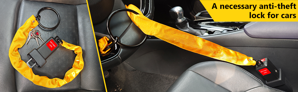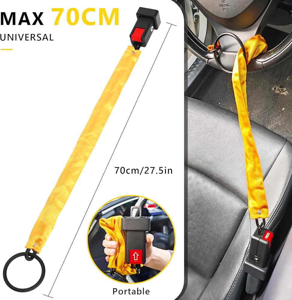 • 【استخدام متعدد الوظائف: قم بتأمين متعلقاتك أيضًا】إلى جانب تأمين عجلة القيادة وحزام الأمان، يعمل هذا الجهاز المضاد لسرقة السيارة كرادع للسرقة لحقيبة يدك أو الأشياء الثمينة الأخرى. ما عليك سوى ربط حقيبتك بالقفل، مما يضمن راحة البال أثناء تواجدك بعيدًا.