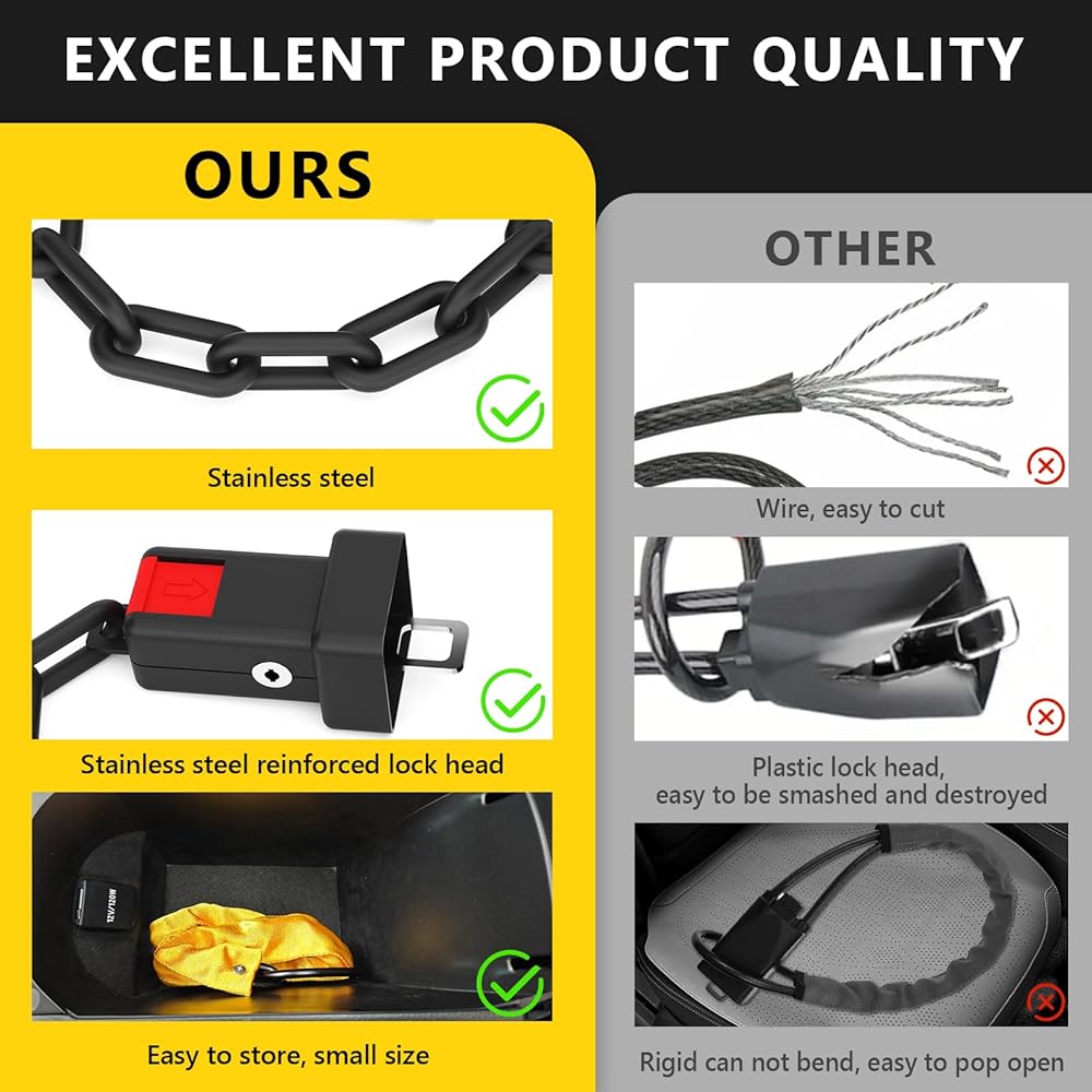 • 【سلسلة فولاذية من الدرجة العسكرية مع مقاومة معززة للقص بنسبة 68%】يستخدم قفل عجلة القيادة OPSOOPI سلسلة فولاذية من سبائك الألومنيوم بسمك 21 مم مضادة للسرقة (فولاذ مجدول 5 مم فقط في السوق) يتحمل هذا التصميم القوي أدوات القطع والقوة الغاشمة ومحاولات التقاط القفل، مما يوفر حماية لا مثيل لها ضد سرقة السيارة.
