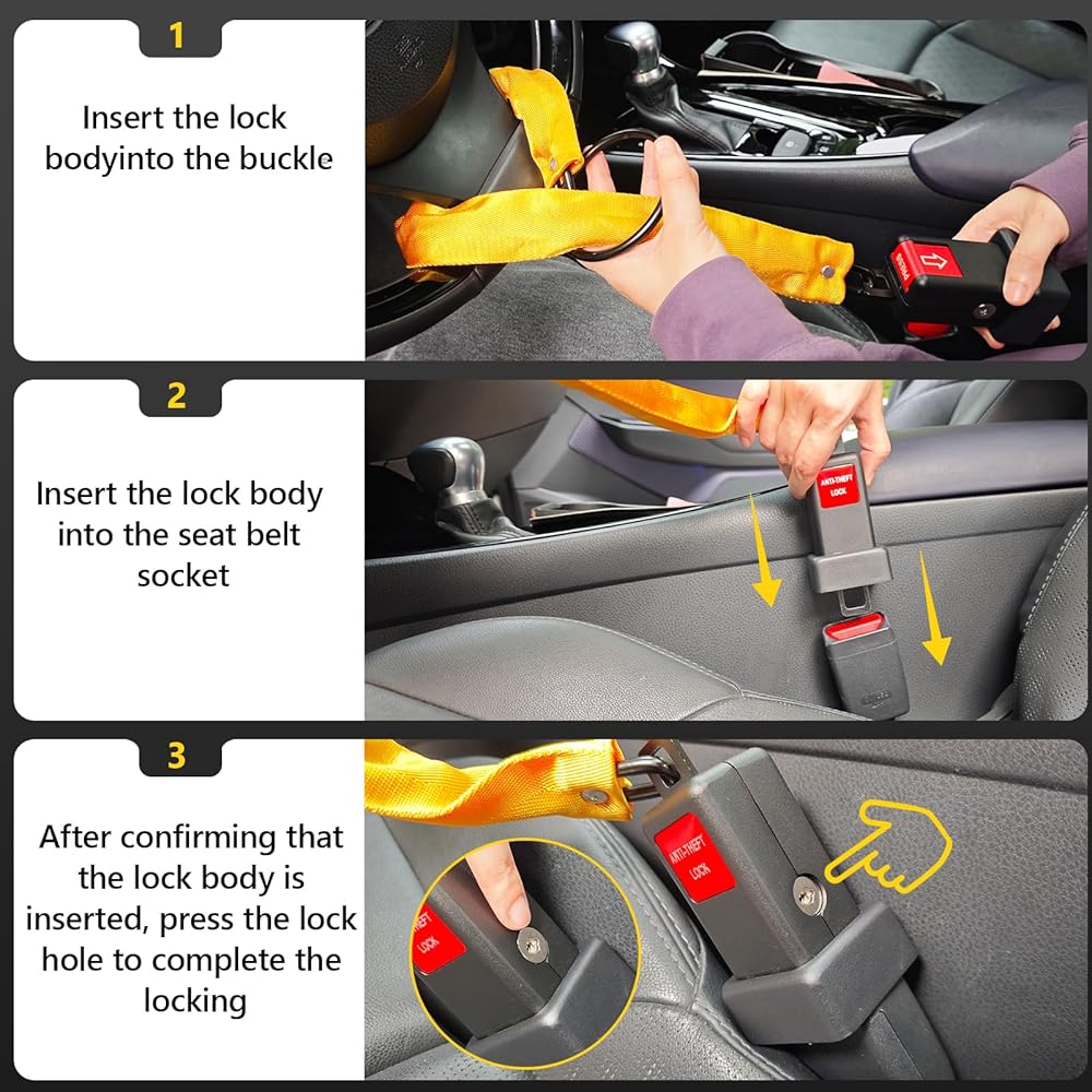 جهاز مضاد للسرقة بقفل عجلة القيادة، قفل حزام الأمان، جهاز مضاد للسرقة مع 3 مفاتيح، جهاز منع سرقة السيارة يناسب معظم المركبات، سيارات الدفع الرباعي، أمان عربة الجولف