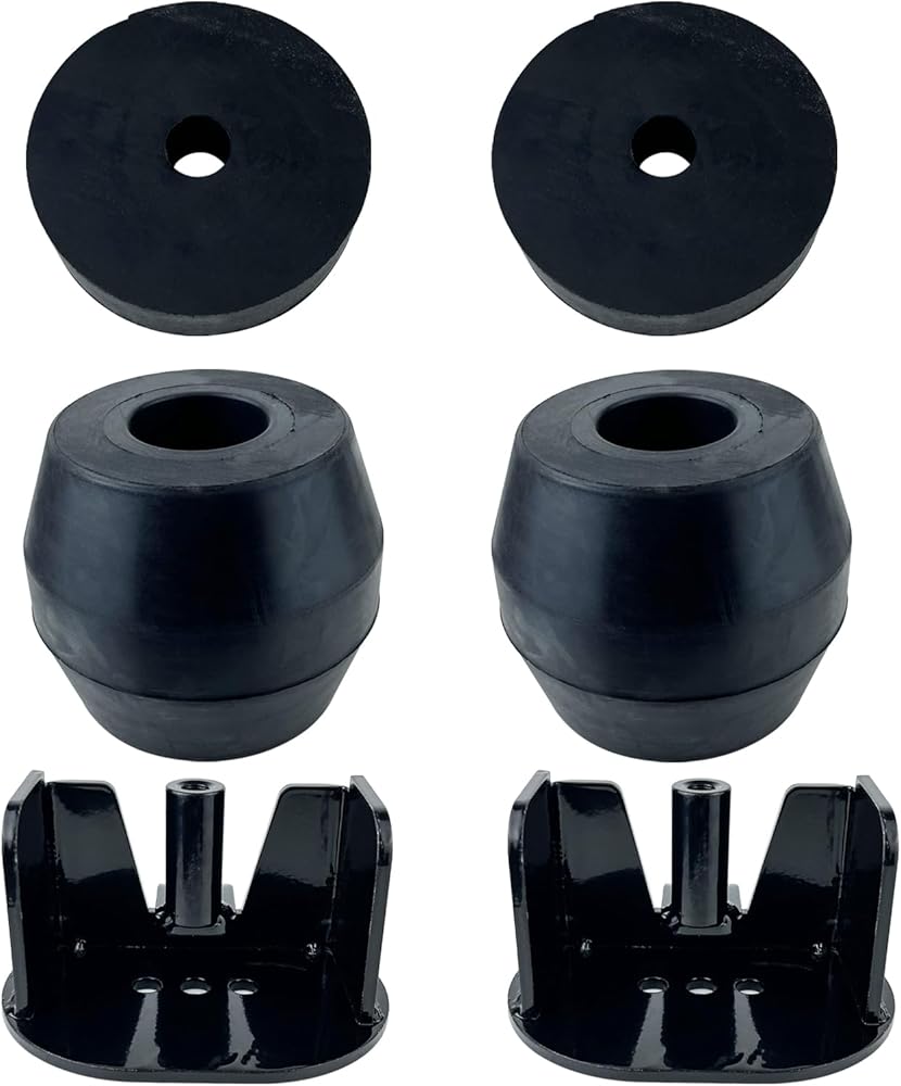 Rear rubber cushion suspension kit compatible with 1970-1998 F350 Cab & Chassis, 1999-2004 F350 Super Duty Cab & Chassis, 2005-2016 F250 and F350 Super Duty Pickup Trucks.