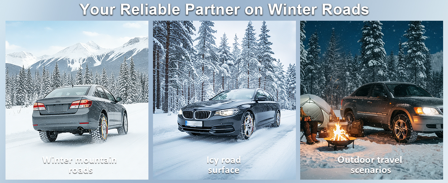 توافق السيارة: تم تصميم سلاسل الإطارات المضادة للانزلاق هذه خصيصًا للسيارات وسيارات الدفع الرباعي.